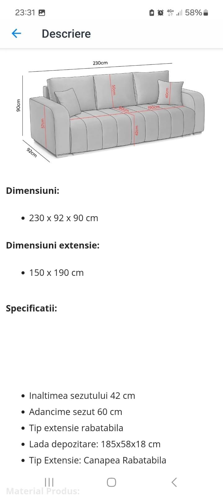 Vând canapea extensibila Diego 3 locuri.