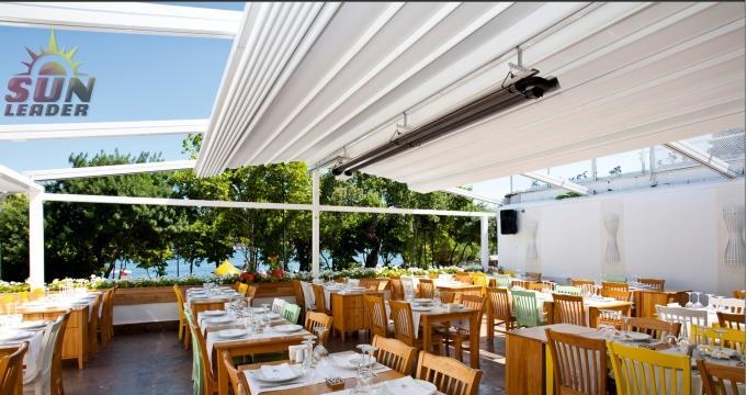 Pergola retractabile Flat Harmony este disponibila in 3 dimensiuni:-Harmony 125: dimensiuni profile 60x125mm, suprafata maxima de acoperire este de 130mp-Harmony 135: dimensiuni profile 80x135mm, suprafata maxima de acoperire este de 182mp-Harmony 150: dimensiuni profile 115x150mm, suprafata maxima de acoperire este de 234mpAre un sistem optional de iluminat si dimmer, traverse pentru inchiderea terasei, lamele pentru umbrire sau Aerofoil Louvre. Scurgerea se face prin jgheab si prin canalele laterale integrate in profilele de aluminiu.Este foarte rezistenta la ploi abundente, vanturi puternice (7 grade Beaufort/ 61km/h) si sustine pana la 15cm de zapada. Se recomanda ca la ninsori abundente, pergola sa fie inchisa, ori terasa incalzita, ca temperatura din interior sa topeasca zapada de pe membrana.Pergolele Sun Leader dispun de certificate ce calitate. Le puteti gasi pe www.pergole-retractabile.ro la sectiune Pergole.Structura este din aluminiu extrudat, vopsit in camp electrostatic, iar membrana Mehler este din PVC cu insertie de carbon.https://www.pergole-retractabile.ro/pergole-flatwww.pergole-retractabile.ro