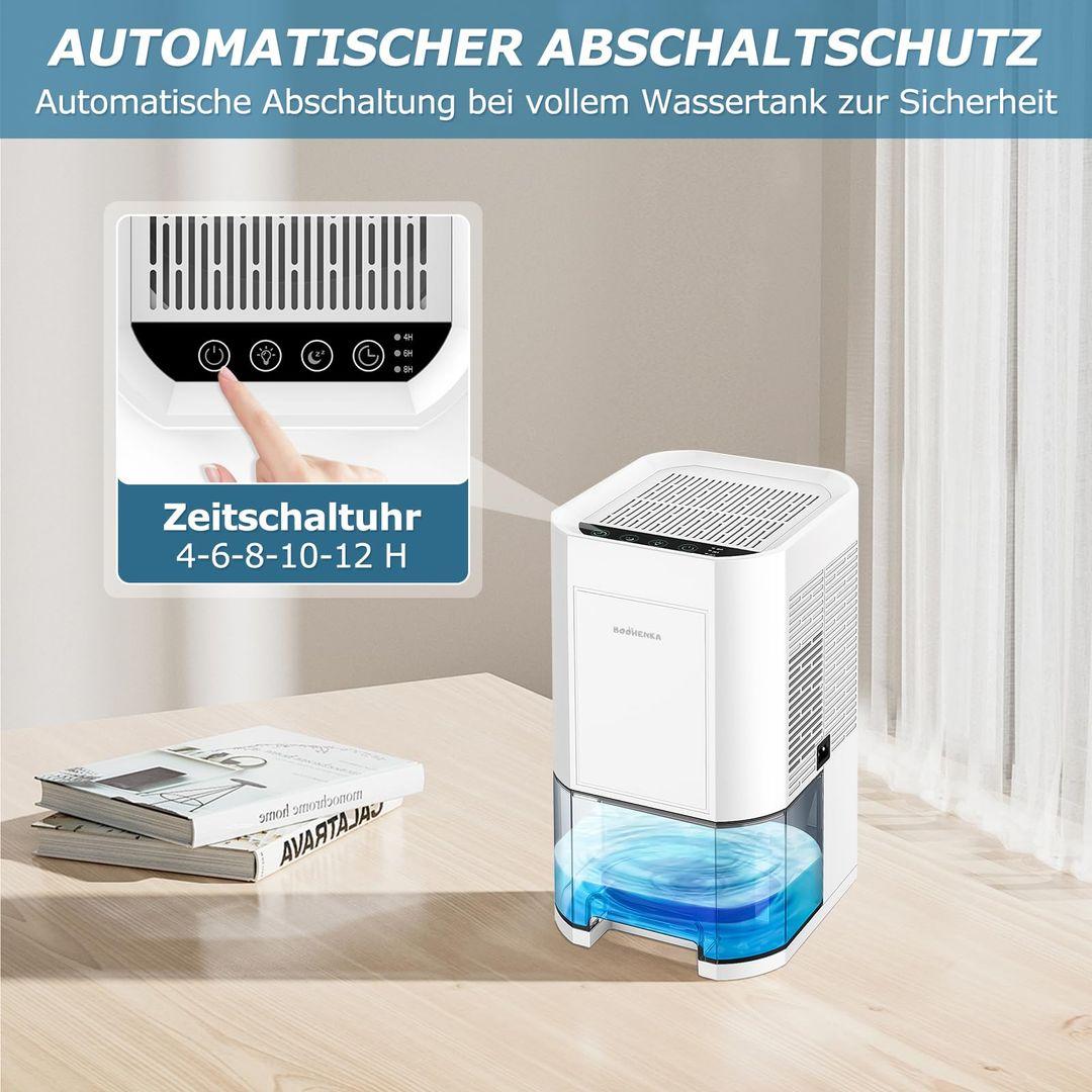 Dezumidificatorul electric BOOHENKA, cu capacitate de 1200 ml, vine echipat cu funcție de dezghețare automată și este disponibil în 7 culori. Potrivit pentru încăperi de până la 30 m².