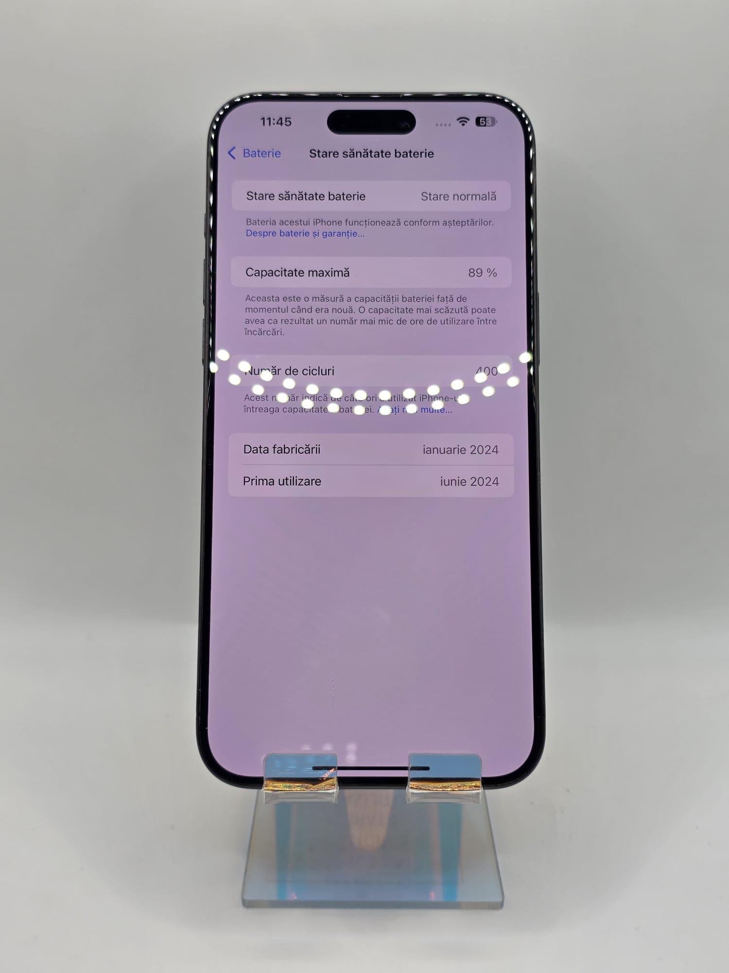 Iphone 15 Pro Max, MEM 256GB, RAM 8GB, Black Titanium, Amanet Doamna Ghica, Cod: 83538
