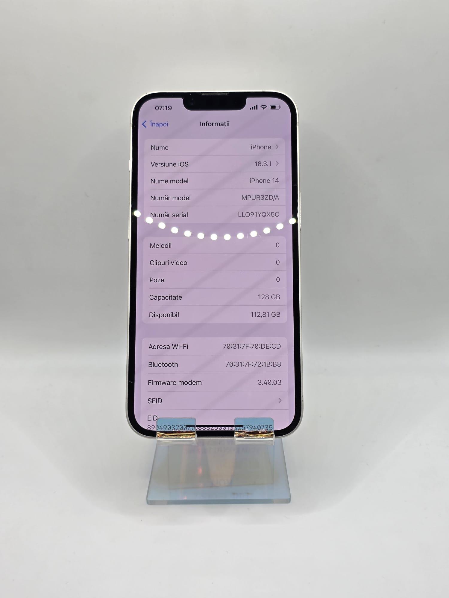 Iphone 14, MEM 128GB, RAM 6GB, White, Amanet Doamna Ghica, Cod: 95560