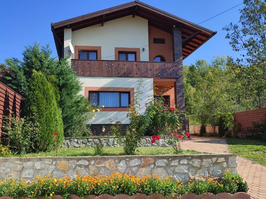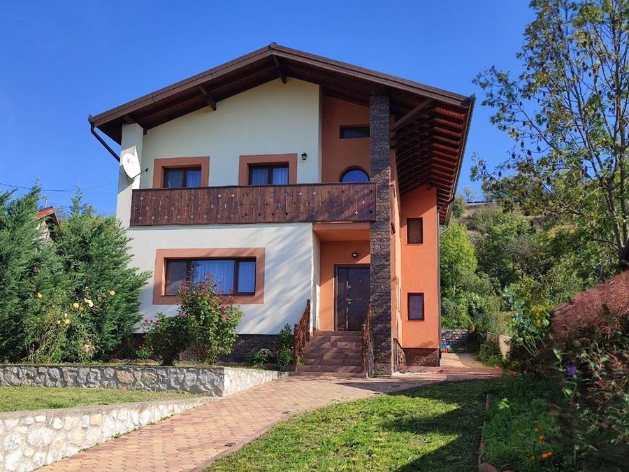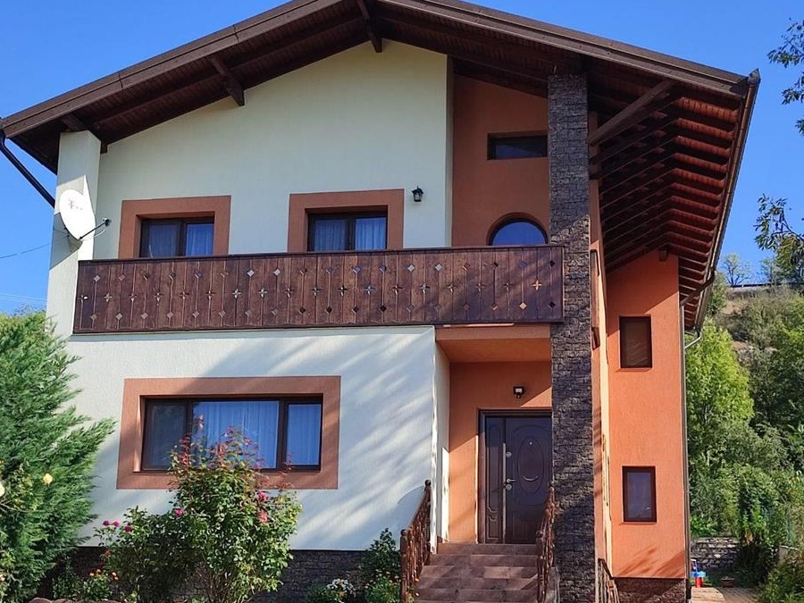 Casă nouă de vânzare în localitatea Carașova.Caracteristici:- 1440 mp suprafață teren- 220 mp suprafață construită, parter și etaj - deține: 5 camere, dressing, bucătărie, 2 băi, 2 cămări, spălător, bucătărie de vară cu cameră tehnică, balcon - magazie lemne, 2 magazii unelte- cca 450 mp curte față și spate, cu terase și pavele- cca 850 mp grădină cu loc de joacă pentru copii și pomi fructiferi- centrala termică cu gazeificare- acoperiș din țiglă metalică GerrardProprietatea este intabulată, se vinde complet mobilată și utilată, este racordată la curent, apă și canalizare, prețul fiind ușor negociabil.