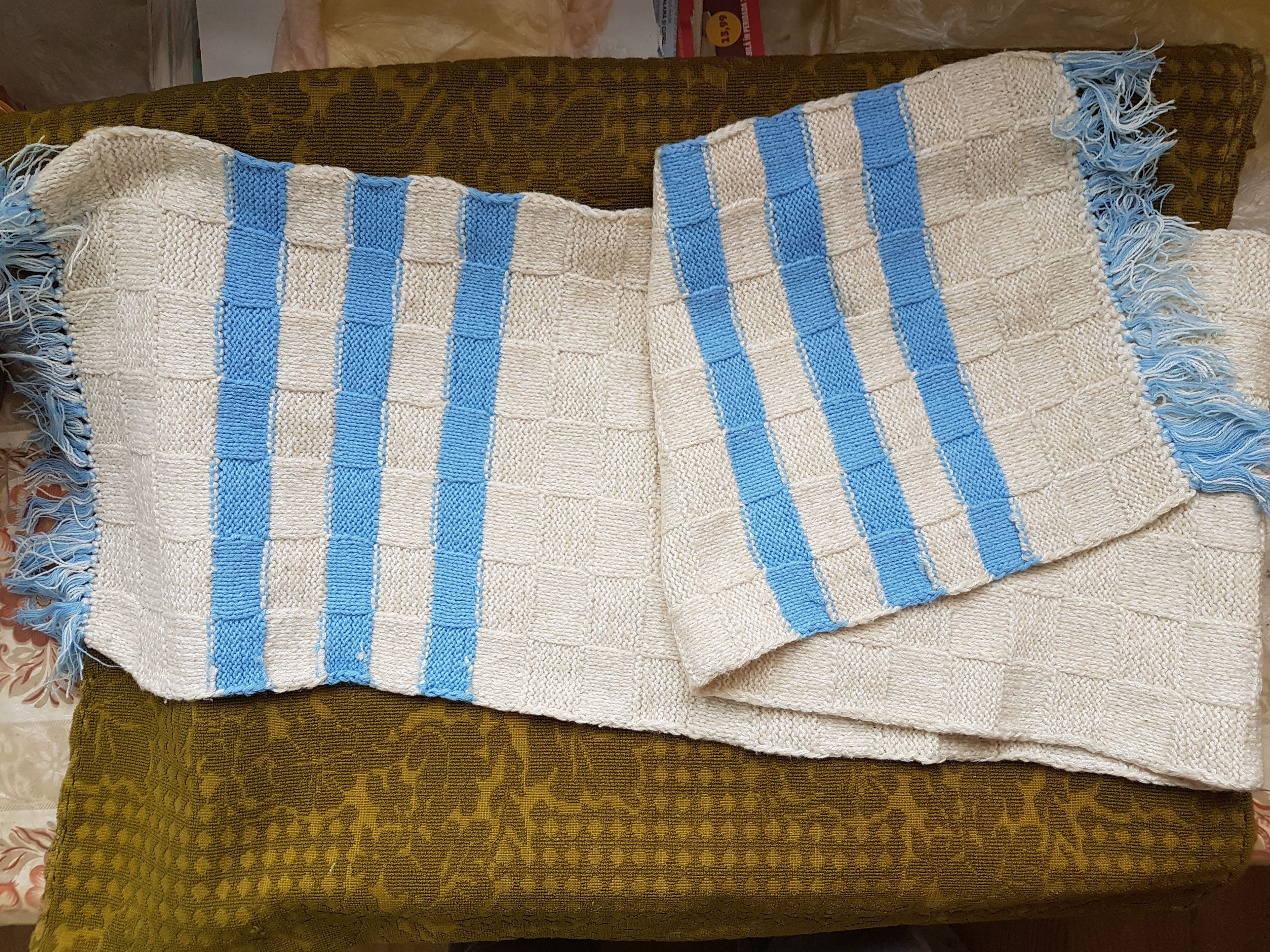 1-Fular lana,culoarea crem,cu dungi albastre.