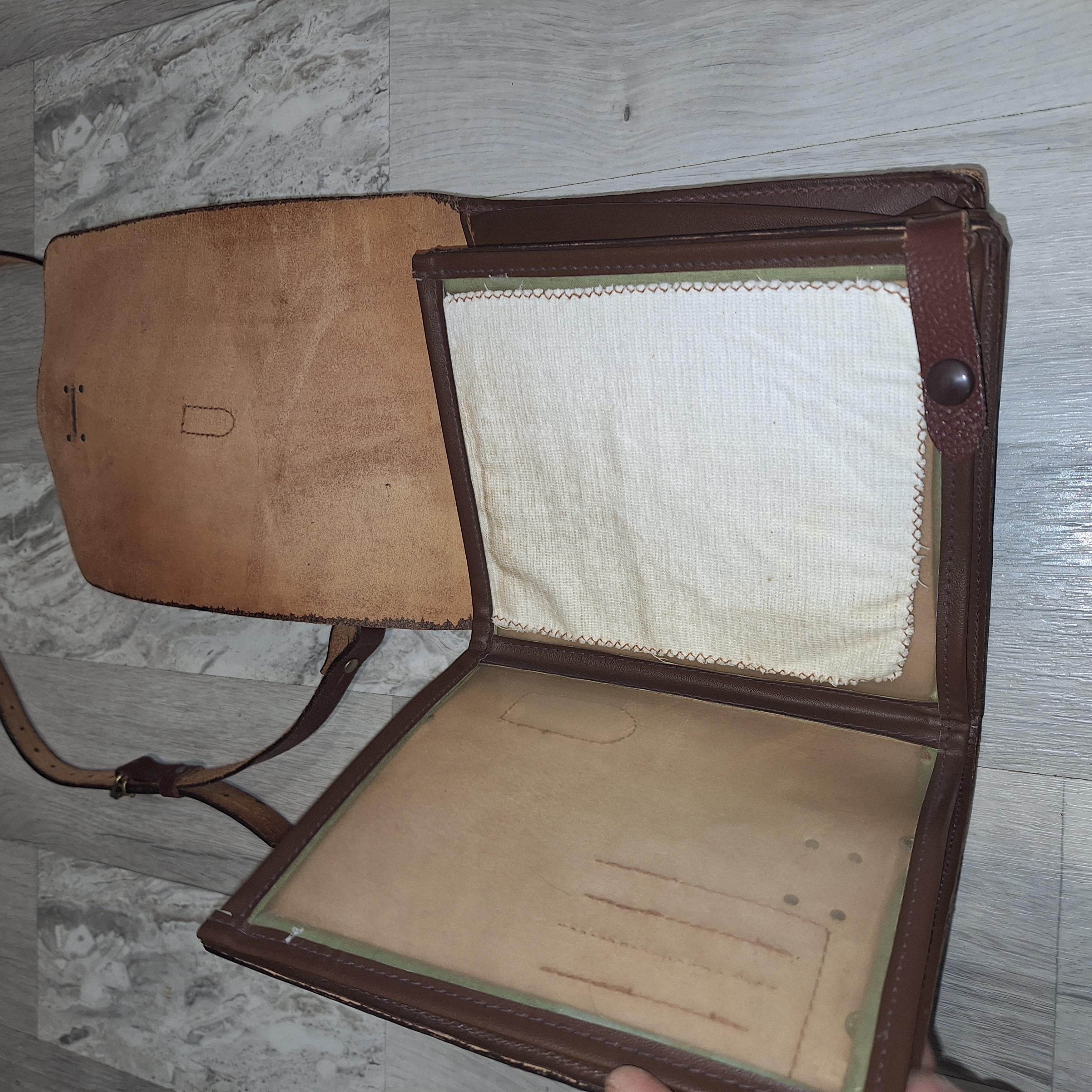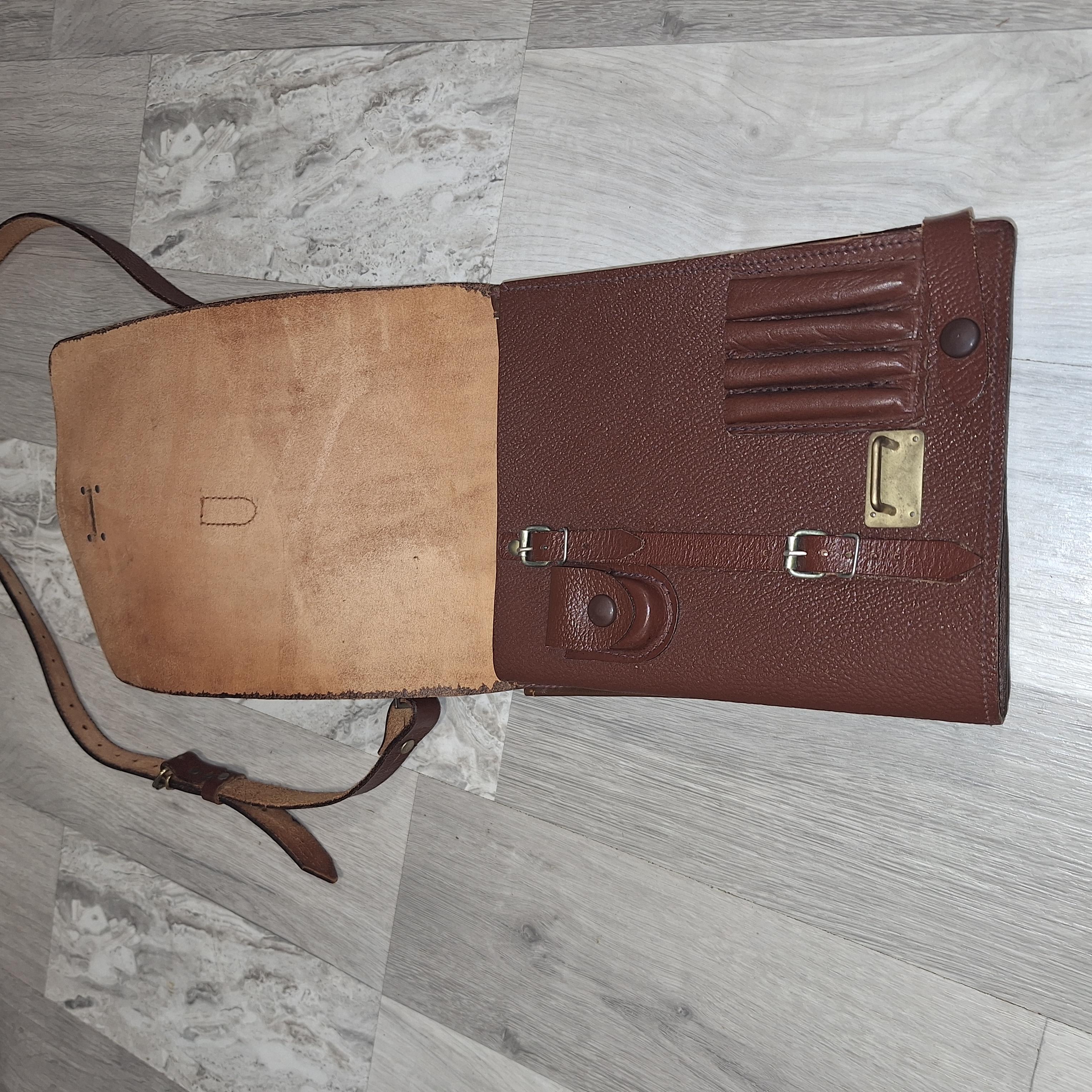 Aceasta este o geantă militară vintage utilizată in special de ofițeri pentru a transporta hărți, documente, stare foarte buna este din piele maro,urmăriți și alte anunțuri postate de mine, mulțumesc
