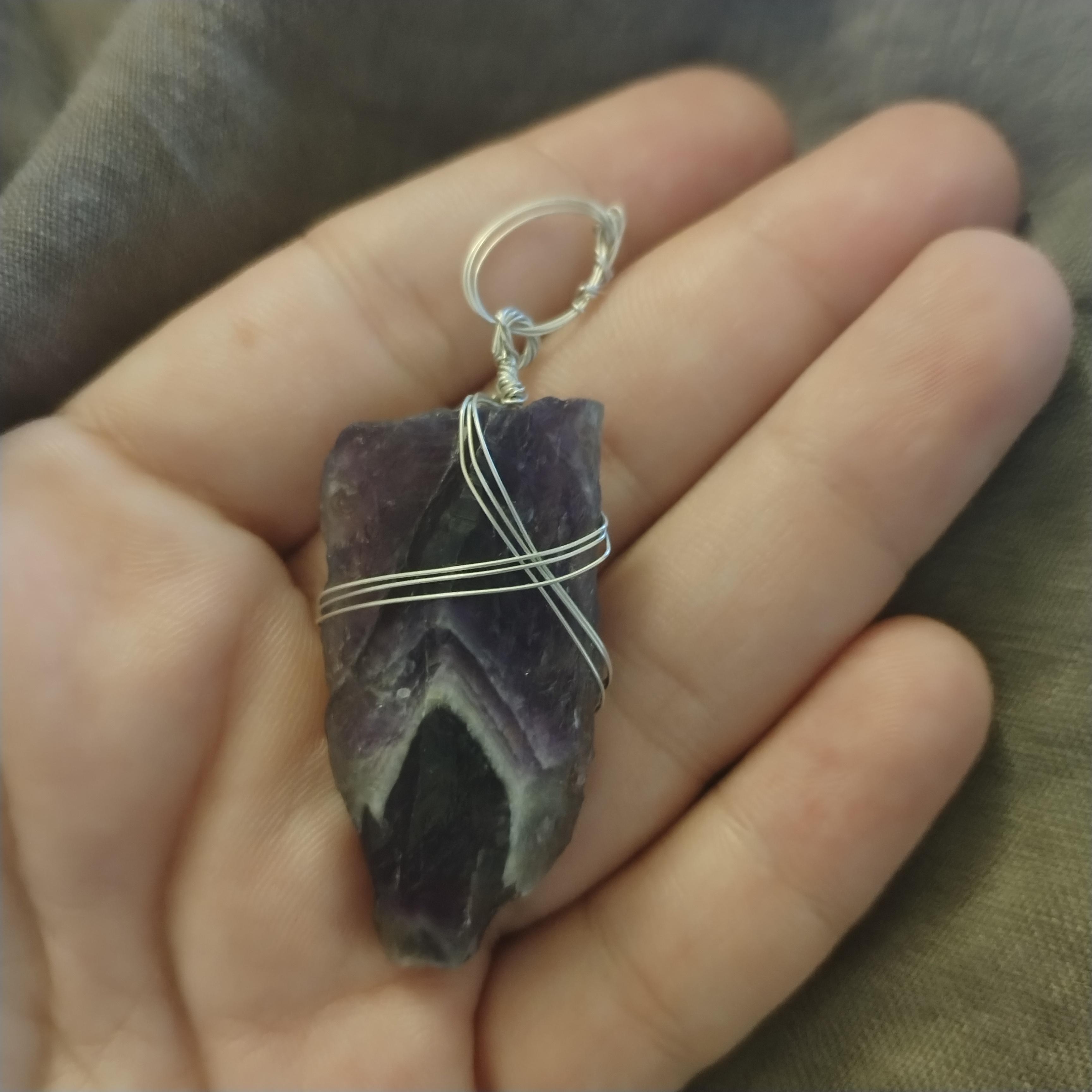 Pandantiv din argint 925 și ametist chevron vârf brut unicat, handmade