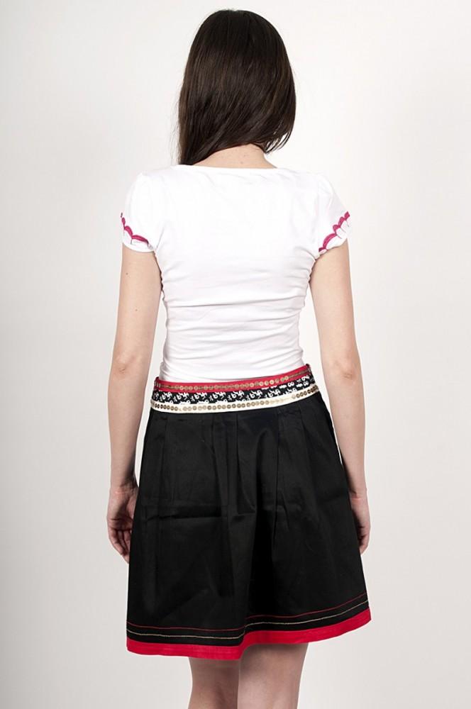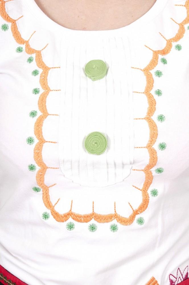 Descriere produs: Bluza bumbac cu un design unic. Broderie florala. Doua ornamente verzi din textil, ca un element forte al acestei bluze.