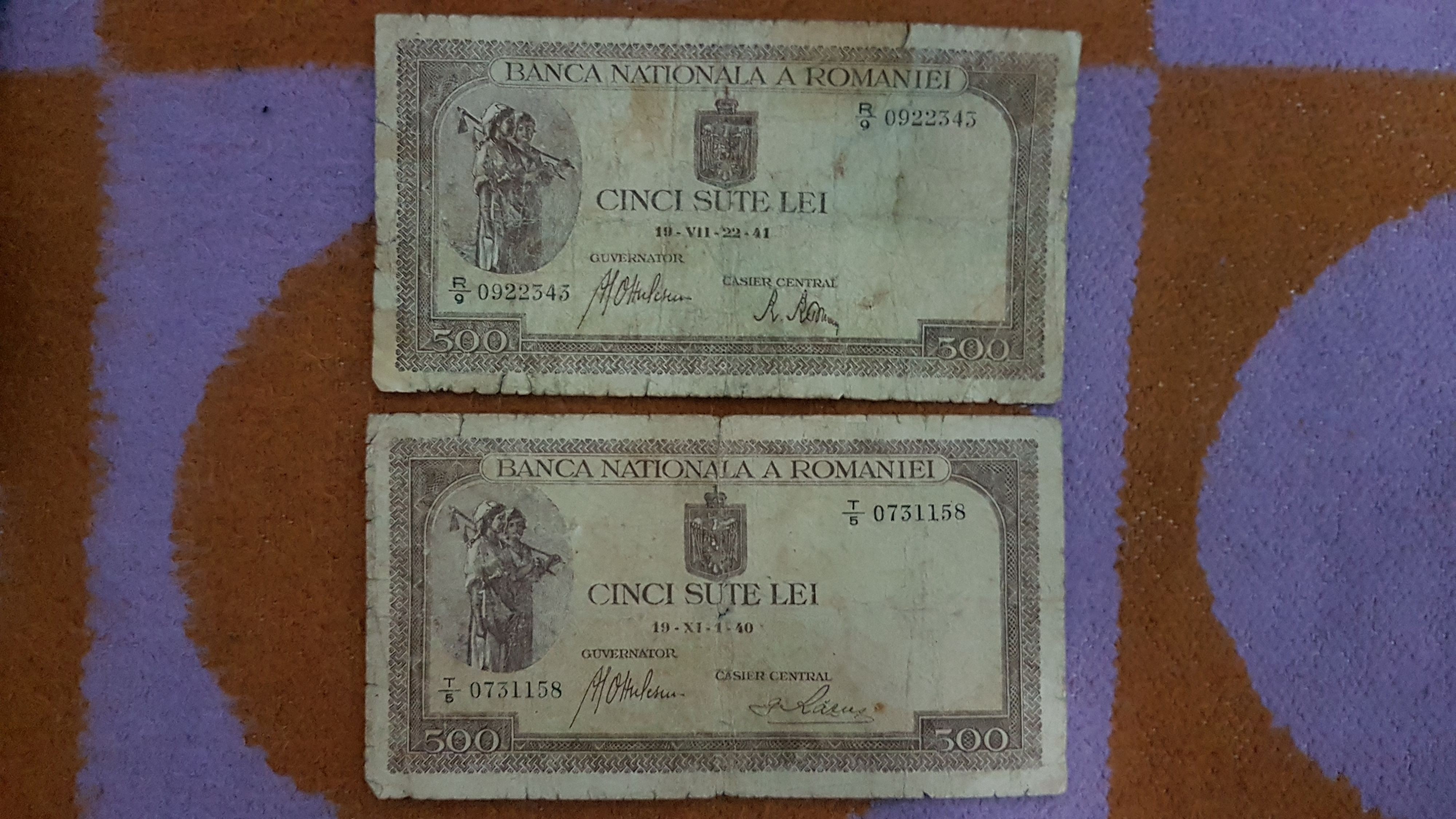 2 Bancnote 500 lei puse in circulatie in anii 1940-1941.Mai jos aveti detalii despre fiecare in parte: