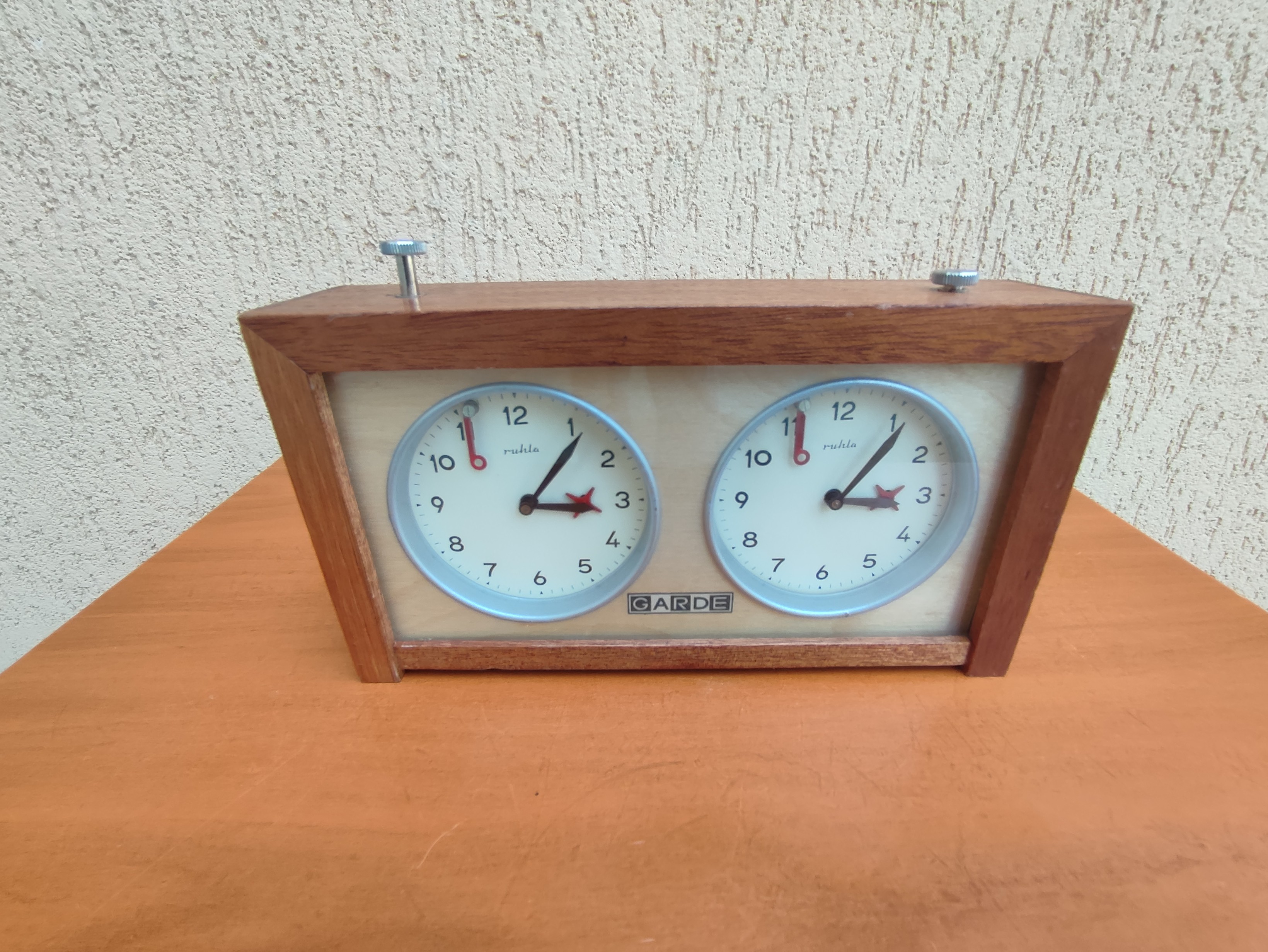 Vând cronometru profesional de șah "Ruhla Garde" din Germania anilor '80. Acest model de cronometru a fost folosit la campionatul mondial de șah din 1993, la meciul dintre Gary Kasparov și Nigel Short. Cronometrul este mecanic și perfect funcțional. Starea din poze.