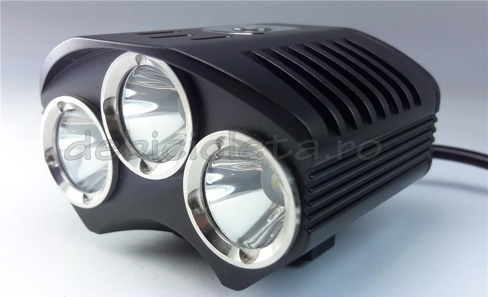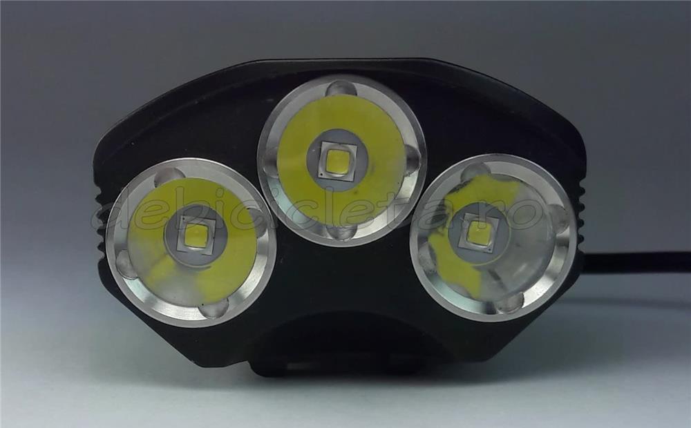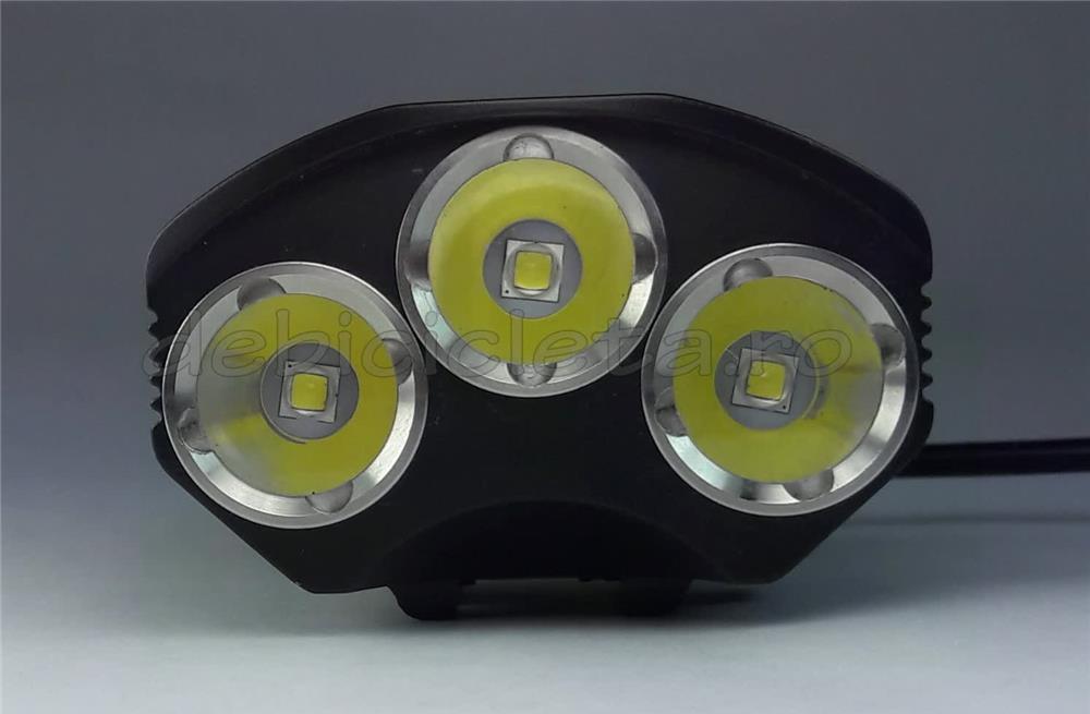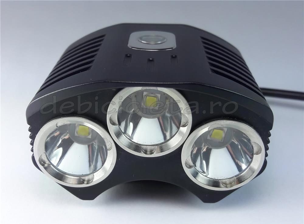 Nume produs: Far bicicleta Cyclone 3T6 D9 cu buton comandaMaterial far: aliaj de aluminiuCuloare far: negruTip LED: Cree XM-L T6, 3 LED-uriTemperatura lumina, culoare: 5000k, alb intensIntensitatea maxima a fluxului luminos: 2500LmModuri de iluminare: 3 + intermitentDurata viata LED: 50.000hUnghi con reflector: 60grTensiune de lucru: 7,4V-8,4VPutere maxima (W): 18Standard utilizare far: IP65Autonomie: 2-5 oreSemnalizarea incarcarii: • indicator rosu pentru incarcare in curs• indicator verde pentru incarcare finalizataSemnalizarea status acumulator: • verde: autonomie peste 80%• galben: autonomie intre 80% si 20%• intermitent galben: autonomie sub 10min.Greutate far + acumulator: 515gDimensiuni: 60x50x41mmLoc montare: ghidonDistanta iluminata maxima: 150mTip acumulator: reincarcabil 7.4V la 6400mAh Li-IonContinut pachet: Far + acumulator + incarcator priza 220V + 2 inele silicon + cablu cu buton comanda farAtentionare: • dupa incarcarea acumulatorului, asteptati 5-10minute inainte de a aprinde farul• a nu se indrepta fasciculul de lumina direct catre ochi.Garantie: 12 luni la far si incarcatorul de priza, 1 luna la pachetul de acumulatori