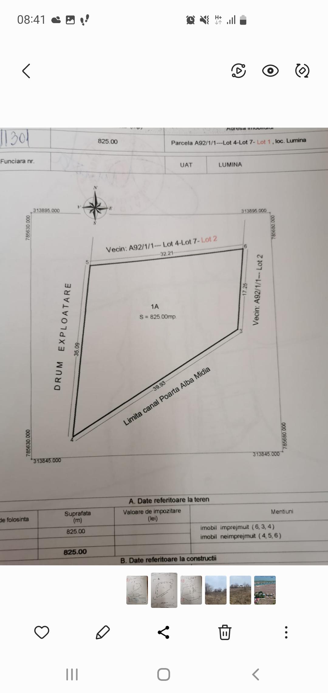 Ofer spre achizitie teren intravilan agricol la PENINSULA LUMINA, in suprafata de 825mp cu dubla deschidere -40ml la Canal Poarta Alba-Midia si 36ml la drum exploatare.