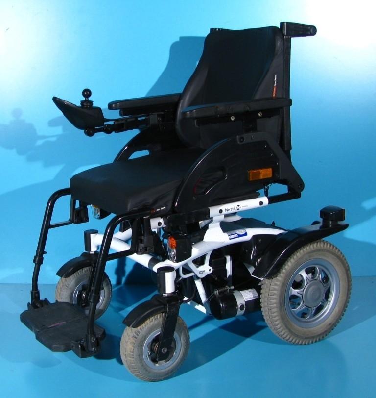 Scaun cu rotile electric, second hand, cu comandă pe joystick, destinat persoanelor cu handicap și celor cu deficiențe locomotorii. Caruciorul electric este proiectat pentru a oferi siguranță, stabilitate și confort, fiind dotat cu sistem de iluminare și semnalizare, ceea ce îi permite utilizarea pe drumurile publice.