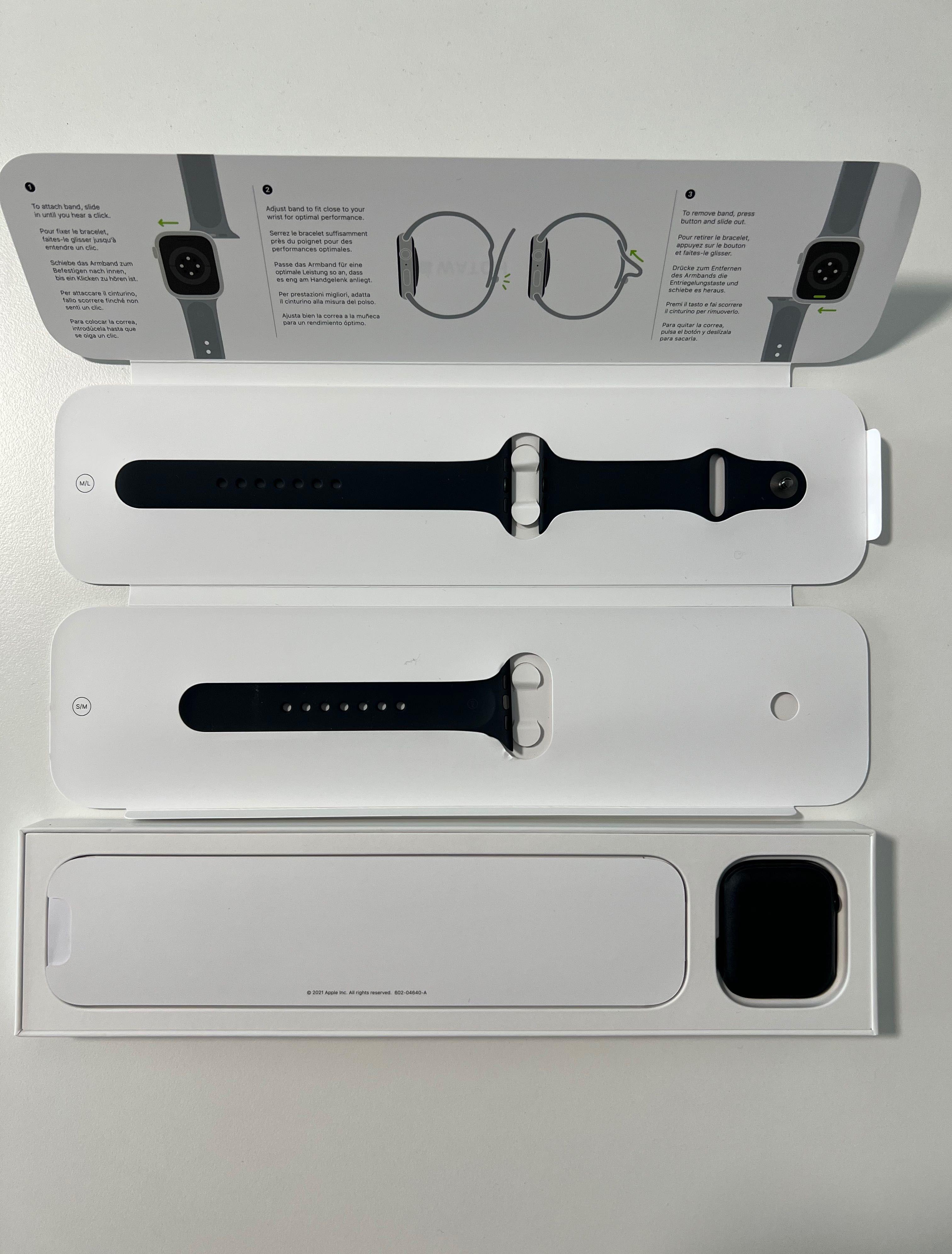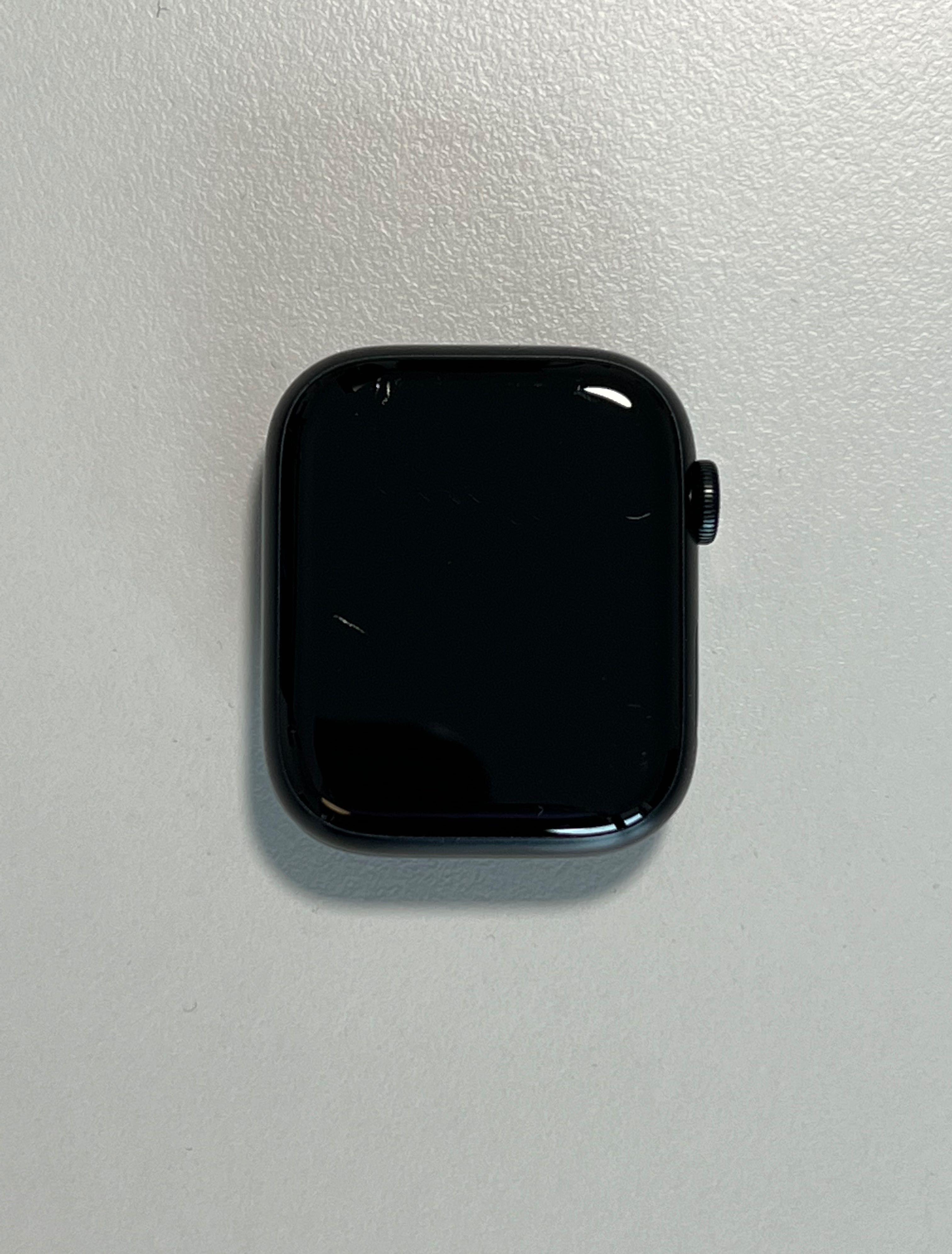 Apple Watch 7 Cellular Aluminiu 44mm Negru, Bratara Sport Midnight, folosit in stare foarte buna. 2 zgarieturi fine pe ecran colt stanga sus (nu se observa in timpul functionarii).