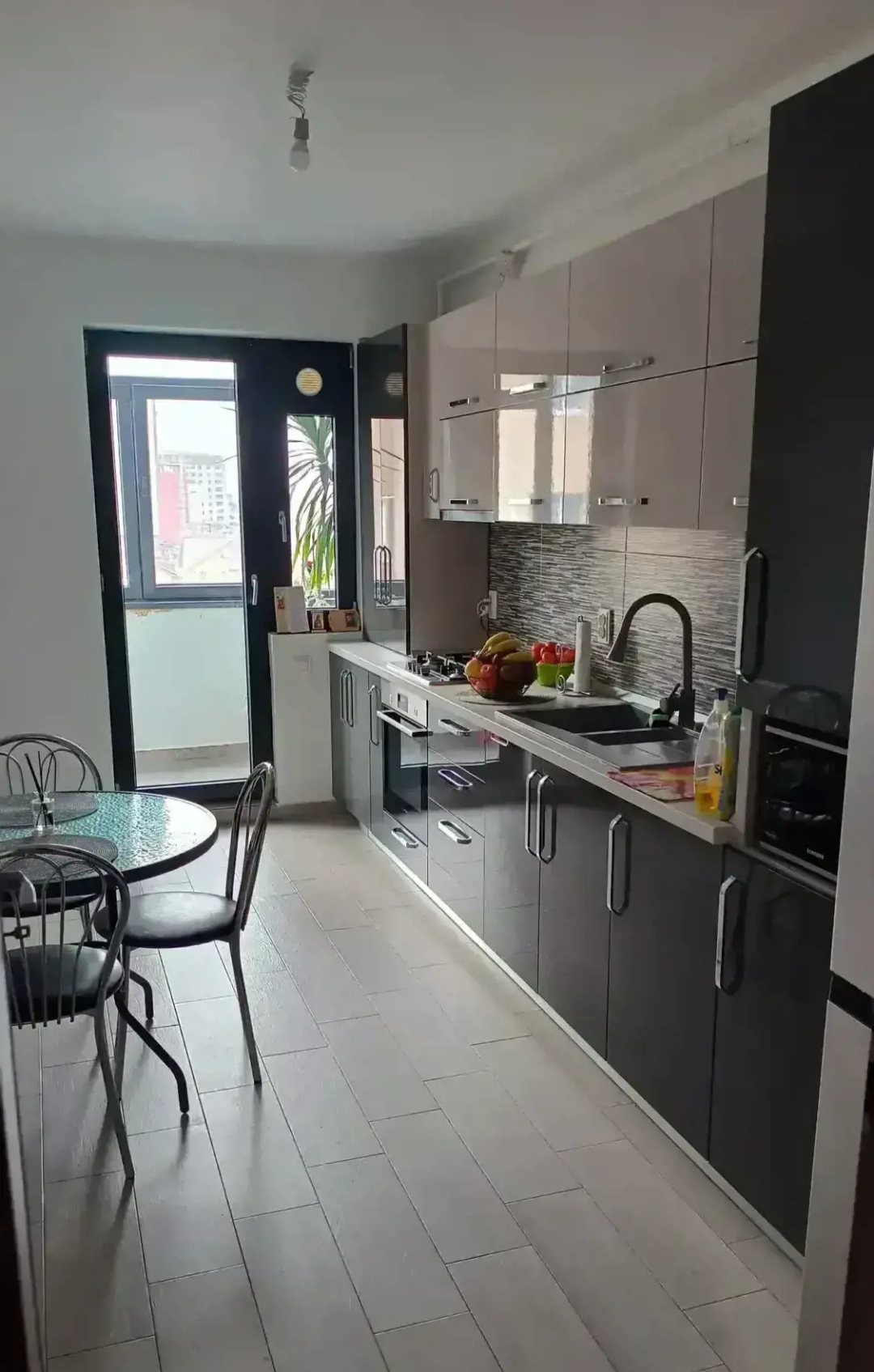 Apartamentul este mobilat si utilat complet , la bucatarie, mobilierul este din MDF lucios de 18 mm grosime , baie utilata complet , uși interior porta doors , tâmplărie veka!