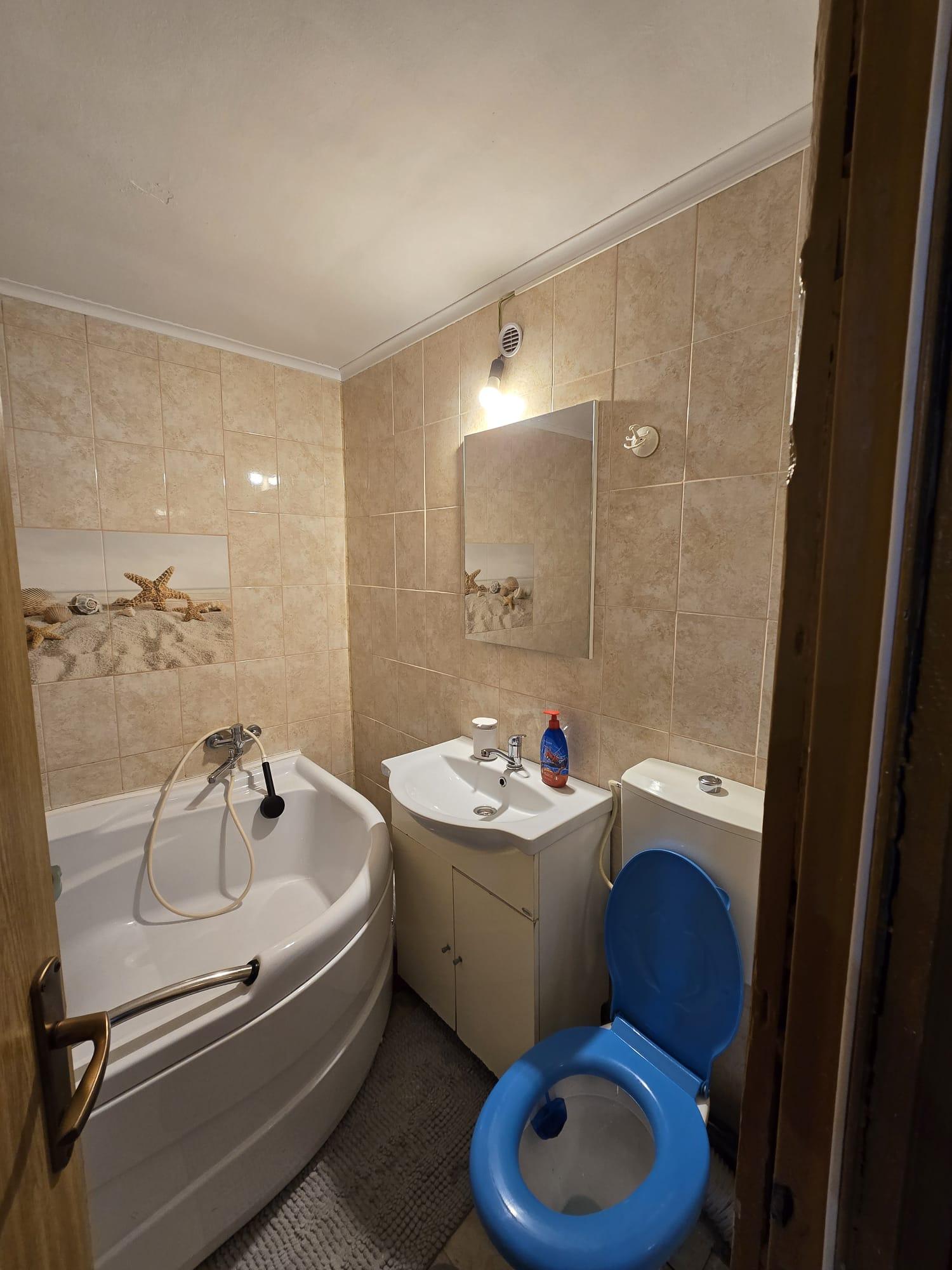 bucatarie: centrala termica cu instalatie de gaz din cupru 2018 cu toate verificarile si reviziile la zi si pentru centrala si pentru teava de gaz de pe scara, calorifer nou din 2018, mobila bucatarie noua 2024 Dedeman, coltar bucatarie, rulouri noi, geamuri termopan, corp suspendat cu 2 usi si corp fix pe gresie cu 2 usi, televizor cu suport, plita Whirlpool gaz noua, cuptor electric nou marca Whirlpool, hota telescopica noua Whirlpool, masina de spalat vase noua Beko.