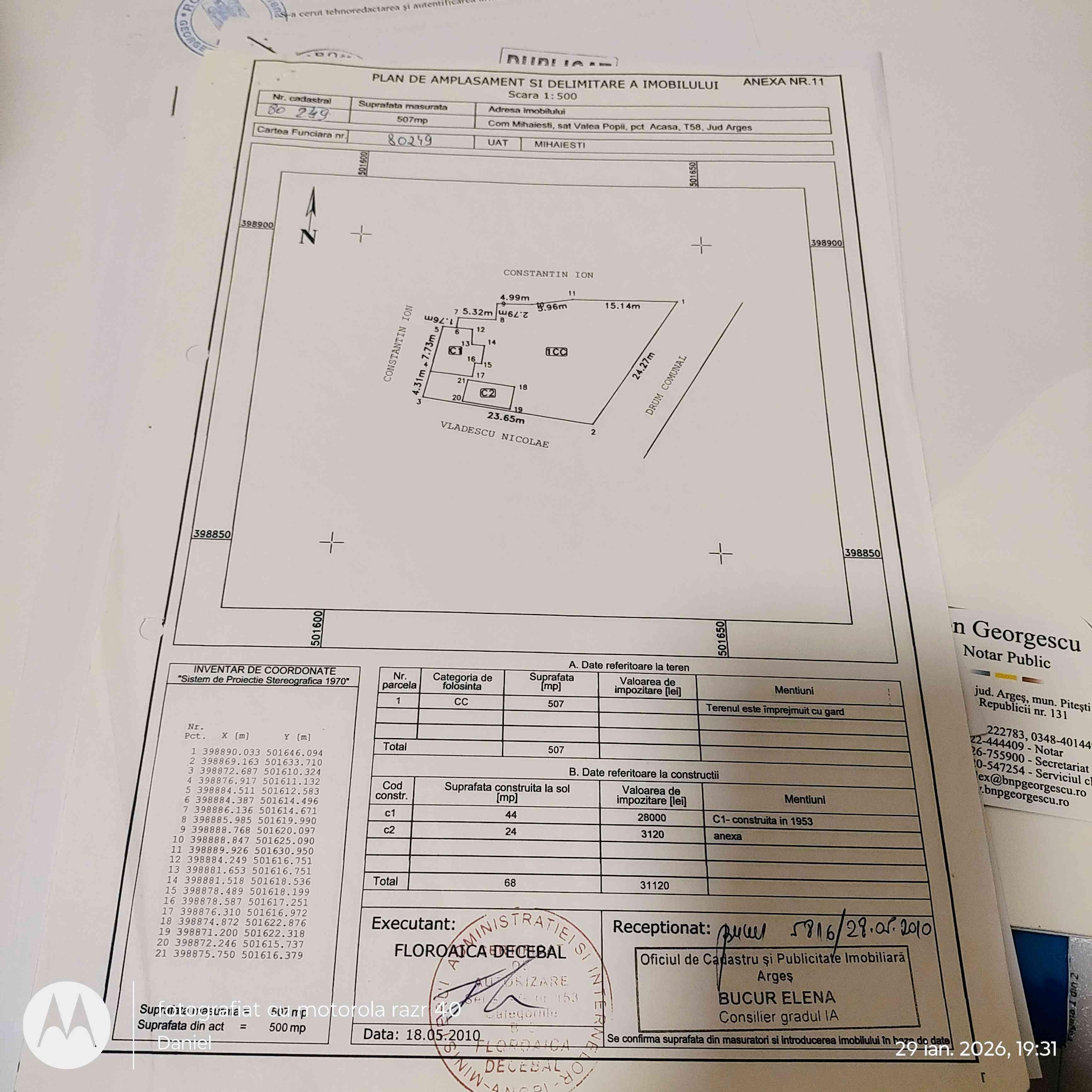 Teren intravilan situat în comuna Mihăești, sat Valea Popii, județul Argeș, având suprafața măsurată de 507 mp, conform planului de amplasament și delimitare a imobilului, întocmit la scara 1:500.