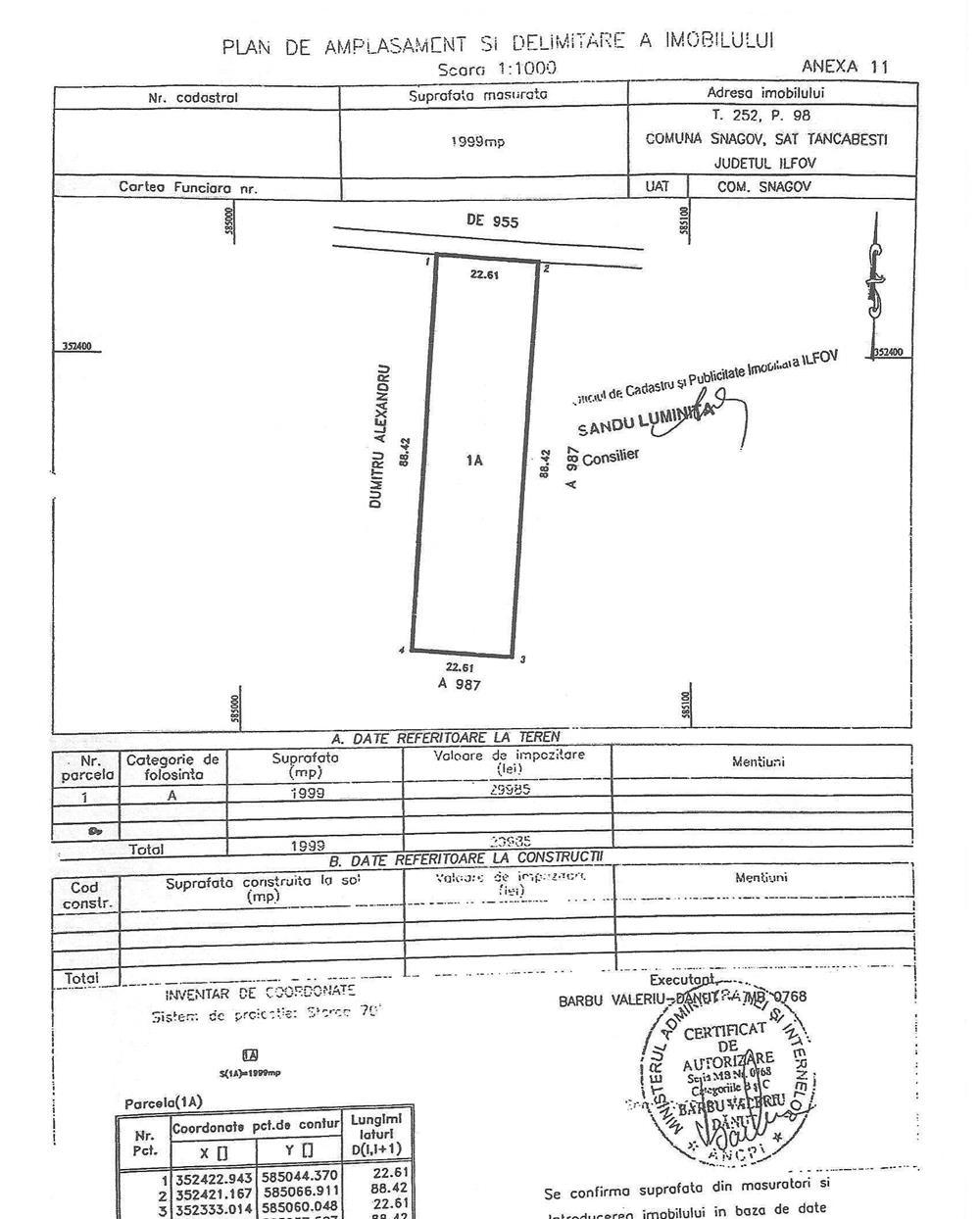 SNAGOVSat Tancabesti, in apropiere de Snagov Plaza ( Outlet Mall), vanzare 2.000 mp. teren intravilan cu deschidere de 22,60 ml. Terenul este la distanta de: 250 m. fata de Snagov Plaza, 400 m. fata de DN1, 500 m. fata de Lacul Tancabesti si 15,5 Km. fata de Mun. Bucuresti .Terenul este ideal pentru constructii .