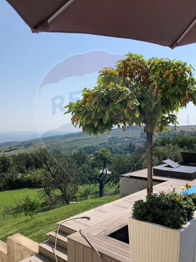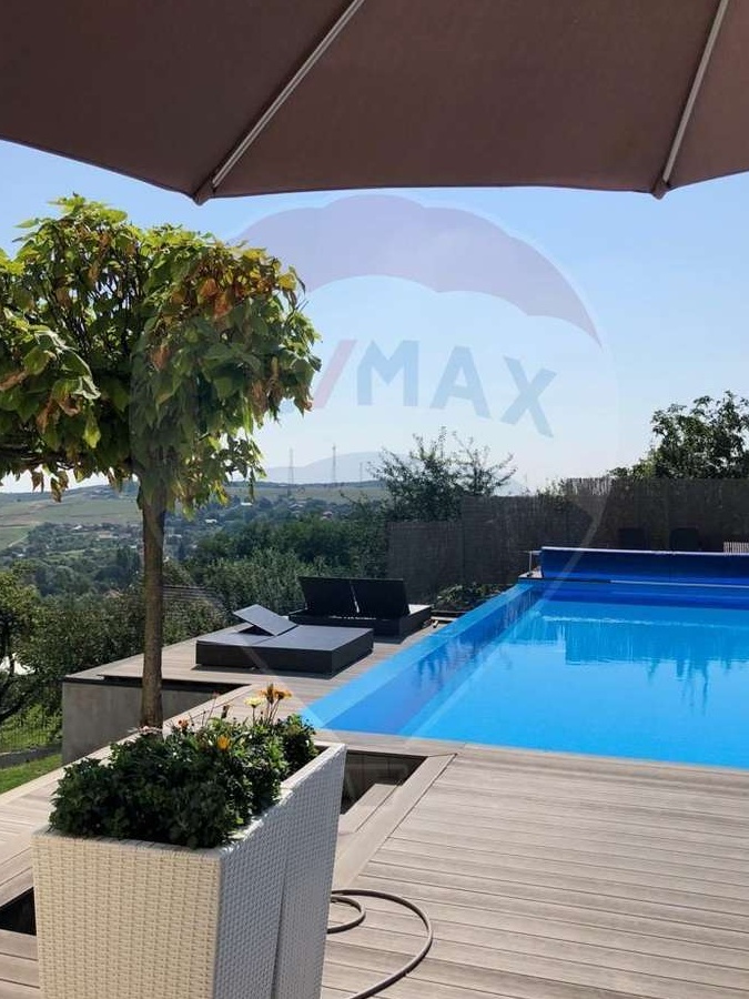 EXCLUSIVITATE RE/MAX! Comision 0% la cumparare!RE/MAX va propune in exclusivitate o oferta deosebita in Feleacu, intr-o zona asezata si cu o panorama superba asupra Clujului! Departe de agitatia urbana, casa reprezinta un mic paradis pentru cei care cauta liniste si viata de familie tihnita!Arhitectura moderna, finisajele exterioare de calitate si compartimentarea practica o transforma intr-o resedinta contemporana ravnita de orice persoana care isi doreste functionalitate si confort intr-un mediu natural si sanatos.Casa se integreaza perfect in peisaj, iar arhitectura exterioara moderna este intarita prin detalii arhitecturale (jocuri de volume sau forme geometrice), rezultatul fiind o locuinta moderna, luminoasa, eleganta si nu in ultimul rand, functionala, cu acel aer de "acasa".Oferta noastra se bucura de multe alte privilegii: este construita intr-o zona cu foarte multa verdeata, beneficiaza de o gradina generoasa si de o curte amenajata cu mult bun gust.Suprafetele mari vitrate din zona de zi ofera multa lumina naturala spatiului interior si permit ca doua medii, cel interior si cel exterior sa comunice perfect. Finisajele interioare sunt in culori calde si ofera confort si personalitate casei.Vila este situata pe un teren de 2100 mp, are suprafata utila de 369 mp si regim de inaltime D+P+E.La demisol exista un sas, o baie, un hol, o camera hobby, ALA, WC de serviciu, un vestiar, camera centralei termice si un garaj de 3 locuri.Parterul se compune din holul de acces, bucataria cu camara, livingul si sufrageria cu iesire pe o terasa generoasa unde piesa de baza este piscina exterioara. La etaj, dormitorul matrimonial este dispus ideal, in zona retrasa a casei si beneficiaza de baie proprie si de un dressing generos. In amenajarea baii aferente acestui spatiu s-a urmarit crearea unei unitati cromatice si stilistice cu dormitorul. Celelalte doua dormitoare sunt deservite de o a doua baie. Ferestrele mari ofera luminozitate spatiilor si un aspect aerisit, iar panorama spre Cluj este minunata!Locuinta a fost conceputa in asa fel incat sa poata gazdui o familie in toate fazele vietii sale. Fie ca aceasta este deja formata, fie ca este in crestere, incaperile sunt suficiente pentru a asigura confortul intregii familii.Daca v-am starnit interesul, va astept cu mare drag la vizionare!