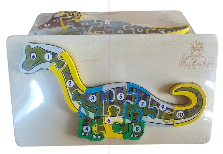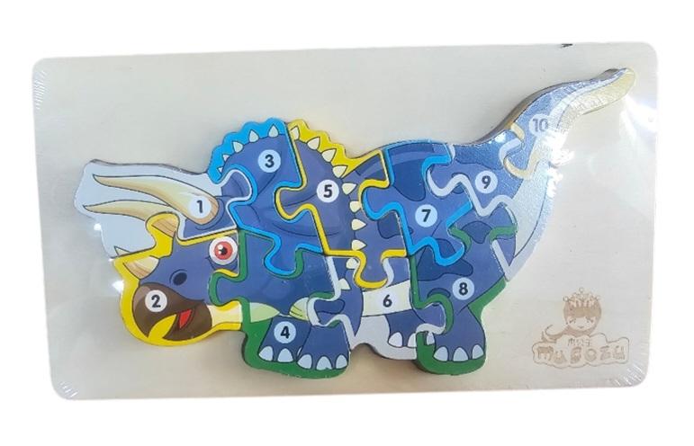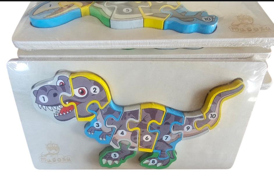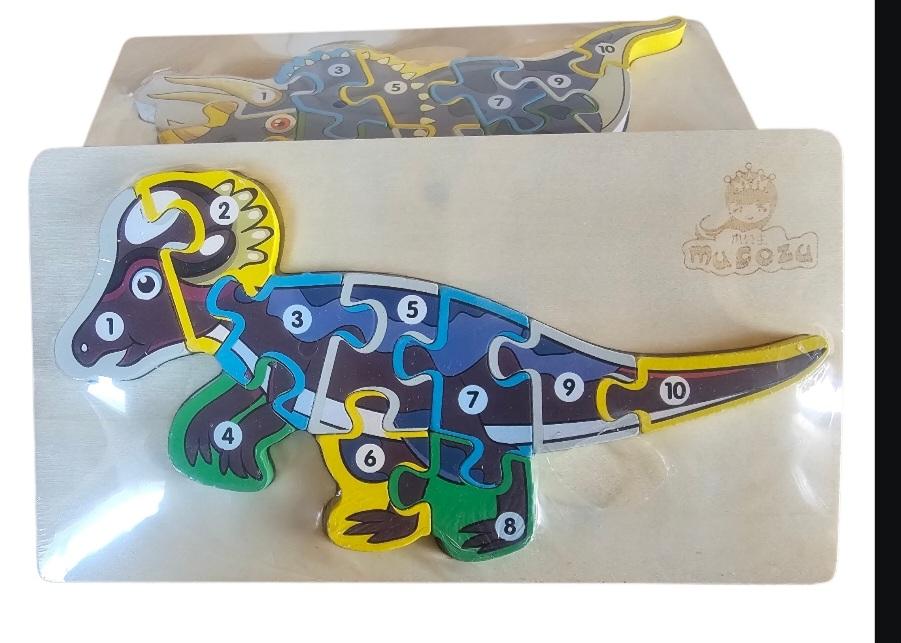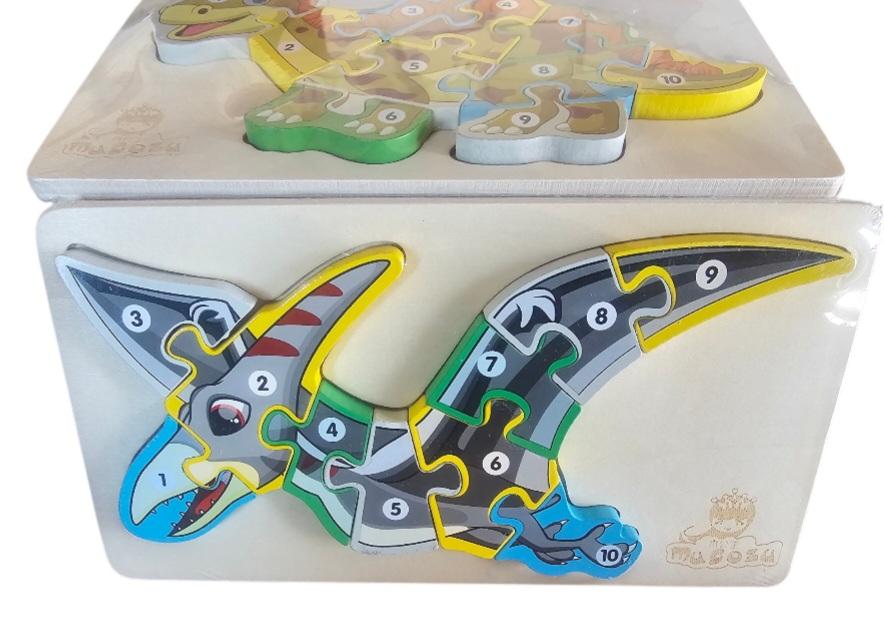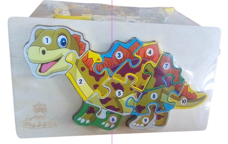 Puzzle din lwmn cu diverse spwcii de dinozauri care au cu numere pwntru a invăța mai ușor numerele