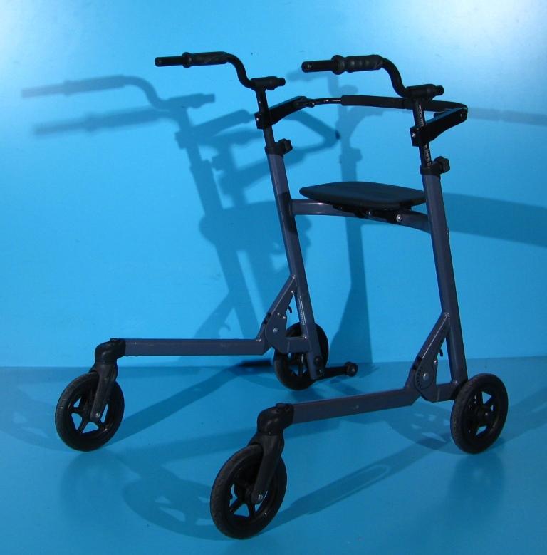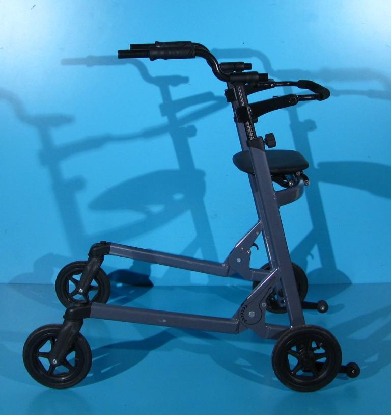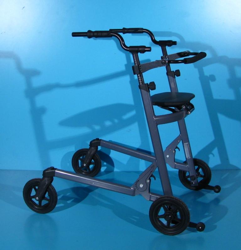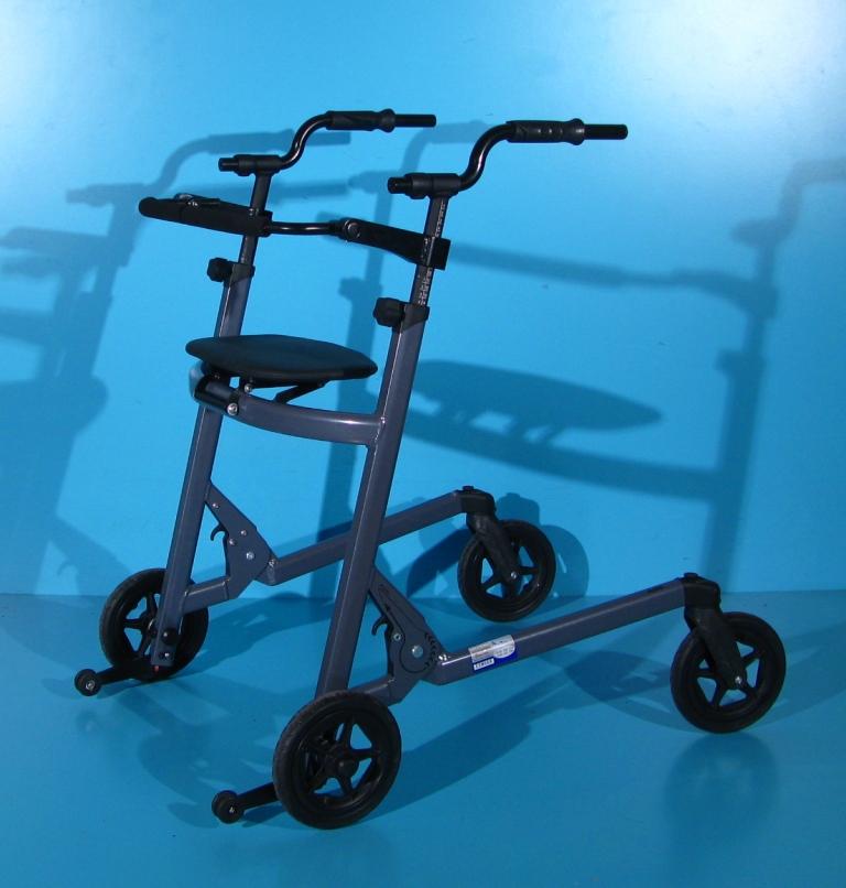 Cadrul de mers cu roti pliabil sustine exercitiile terapeutice pentru a invata miscarile naturale si dezvoltarea echilibrului.