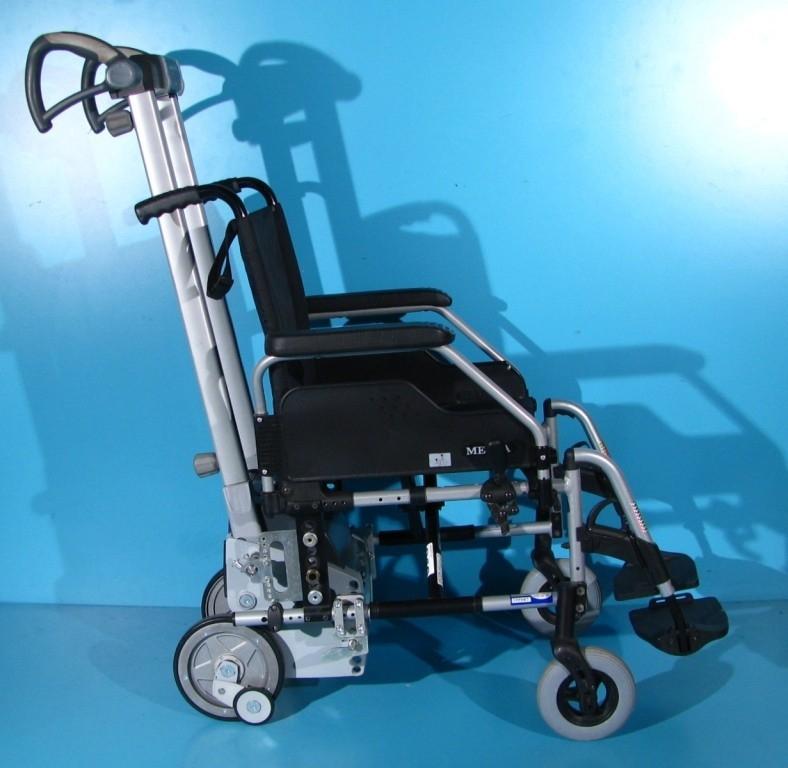 Deplasarea in sus si jos se face cu ajutorul unui motor electric. In timpul deplasarii pe scari, rotile mari ale scaunului cu rotile trebuie detasate.
