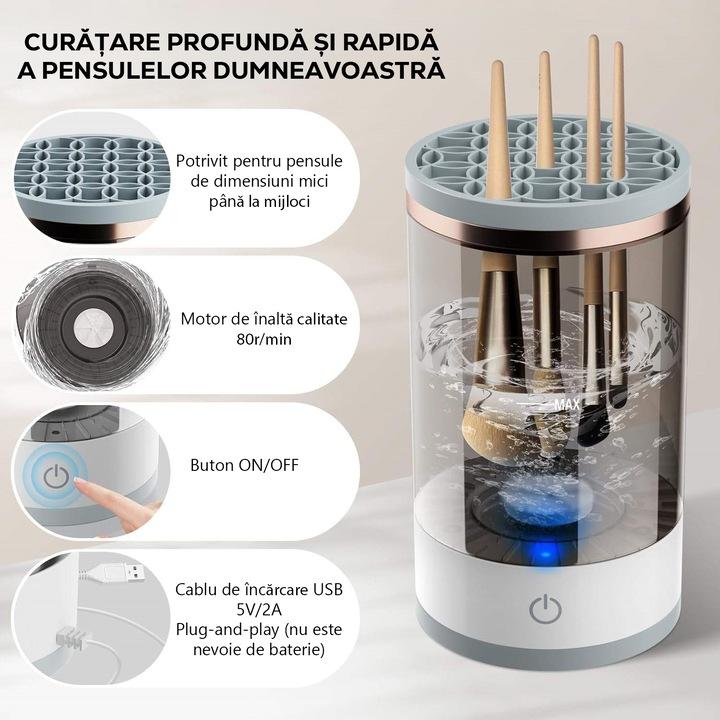Ideal pentru acasă sau salon: Fie că ești un profesionist în machiaj sau pur și simplu îți dorești pensule impecabile, acest dispozitiv este alegerea ideală. Ușor de folosit și extrem de eficient, îți va facilita rutina de curățare a pensulelor, ajutându-te să economisești timp și să păstrezi un standard înalt de igienă.