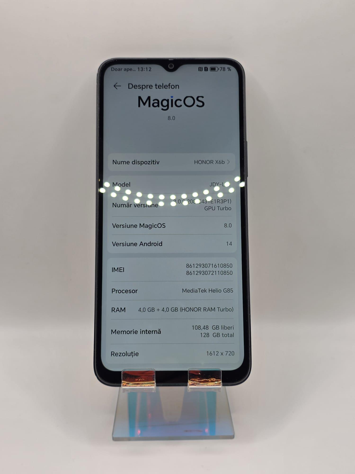 Honor X6B, MEM 128GB, RAM 4GB, Midnight Black, Amanet Doamna Ghica, Cod: 94946
