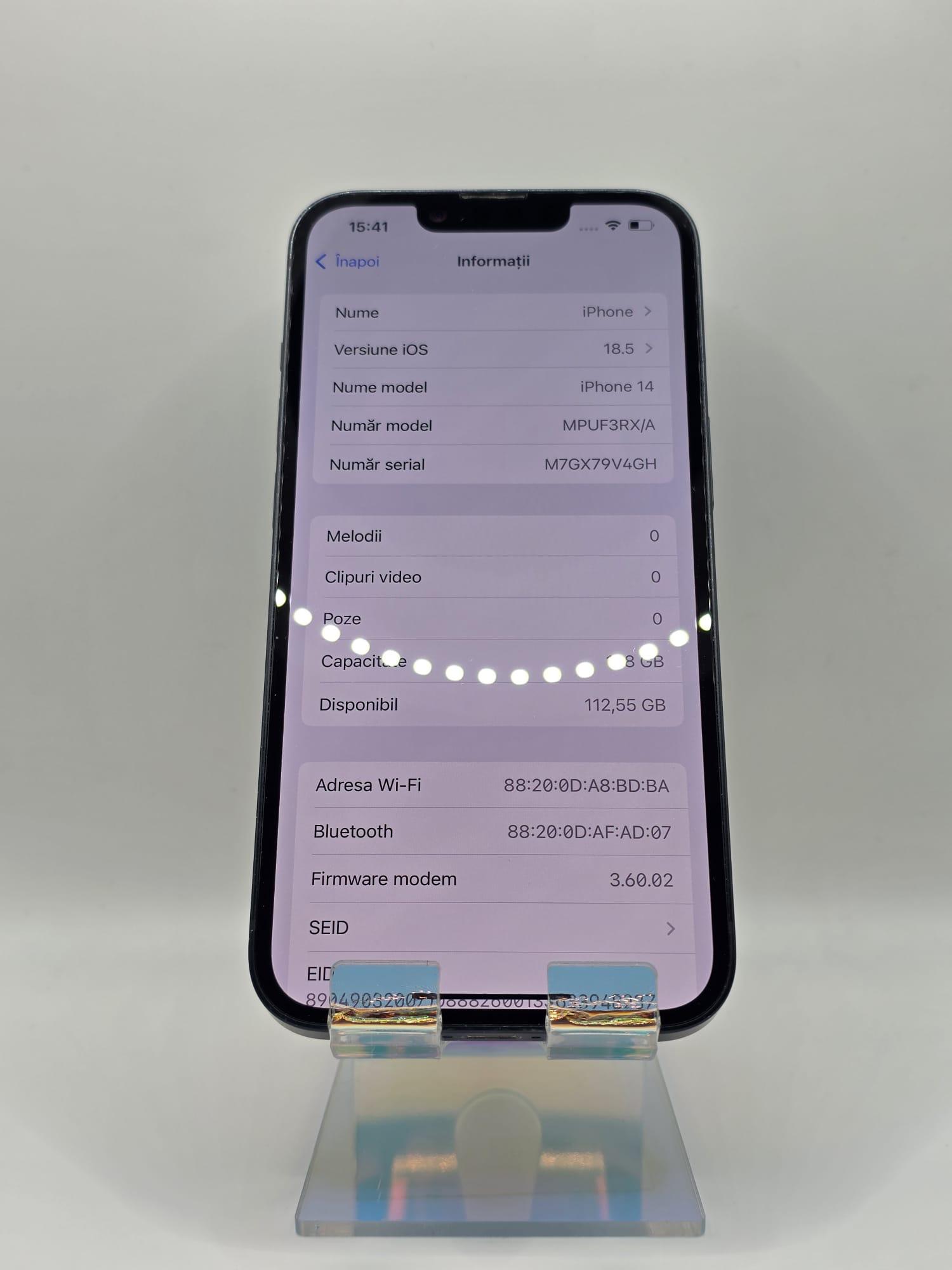 Iphone 14, MEM 128GB, RAM 6GB, Midnight, Amanet Doamna Ghica, Cod: 89793