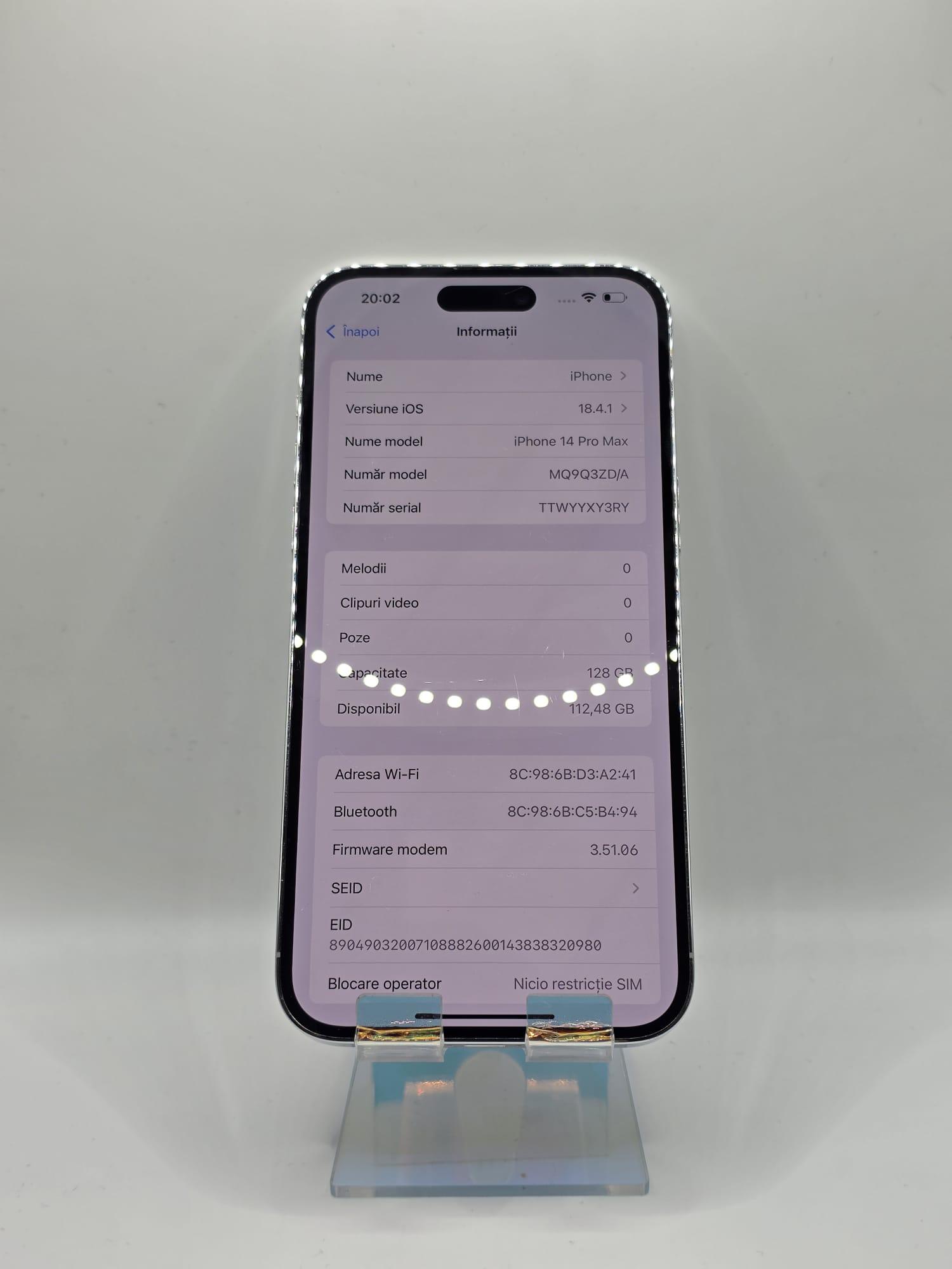 Iphone 14 Pro Max, MEM 128GB, RAM 6GB, Silver, Amanet Doamna Ghica, Cod: 92683
