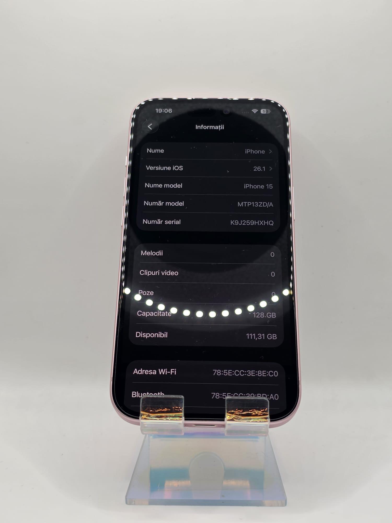Iphone 15, MEM 128GB, RAM 6GB, Pink, Amanet Doamna Ghica, Cod: 94404