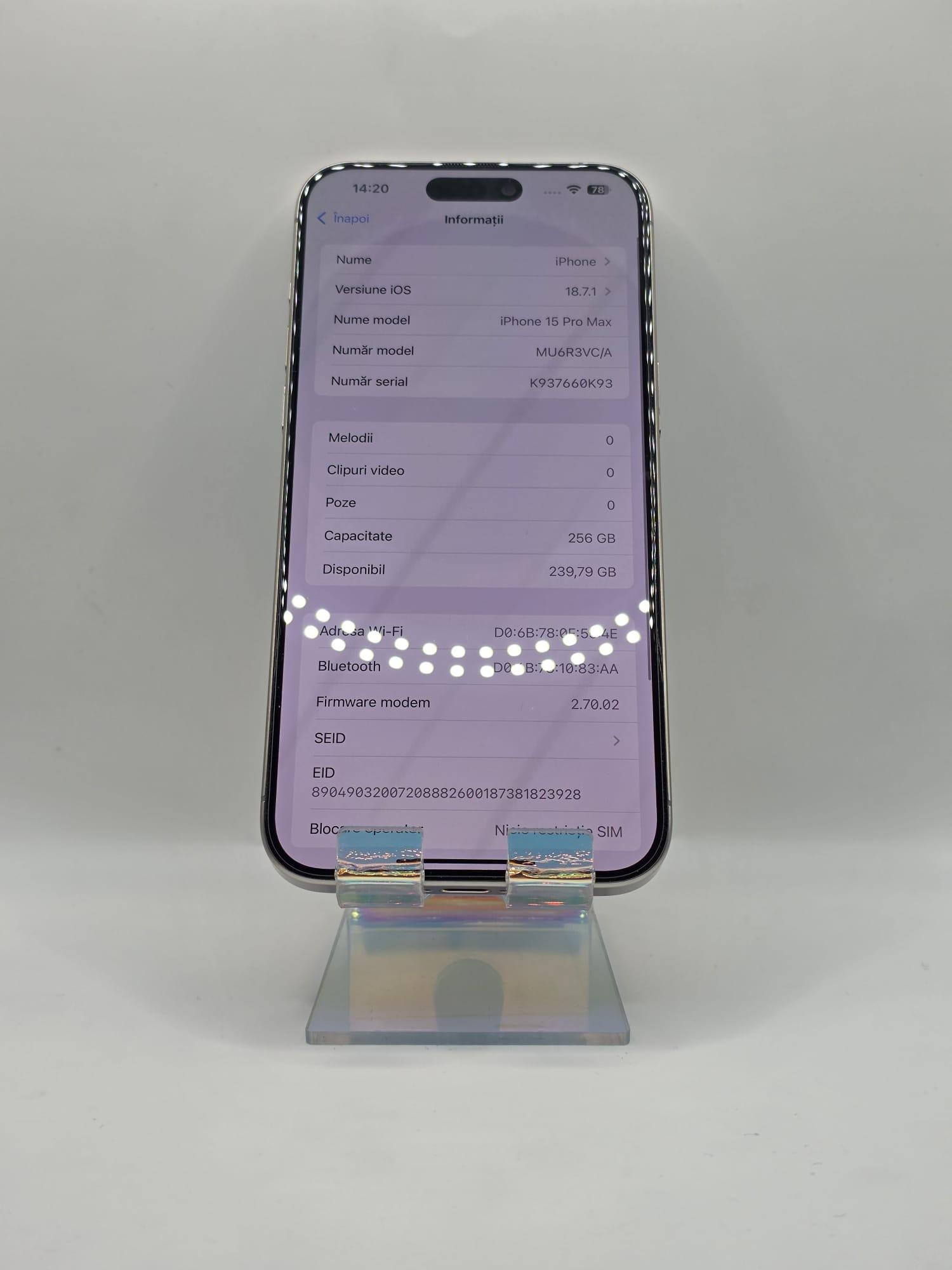 Iphone 15 Pro Max, MEM 256GB, RAM 8GB, Amanet Doamna Ghica, Cod: 93531
