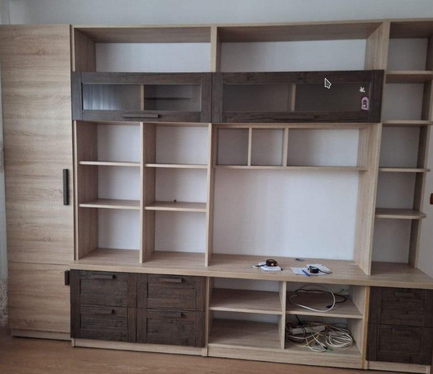 Mobilierul este realizat pe înălțime, până aproape de tavan, maximizând depozitarea