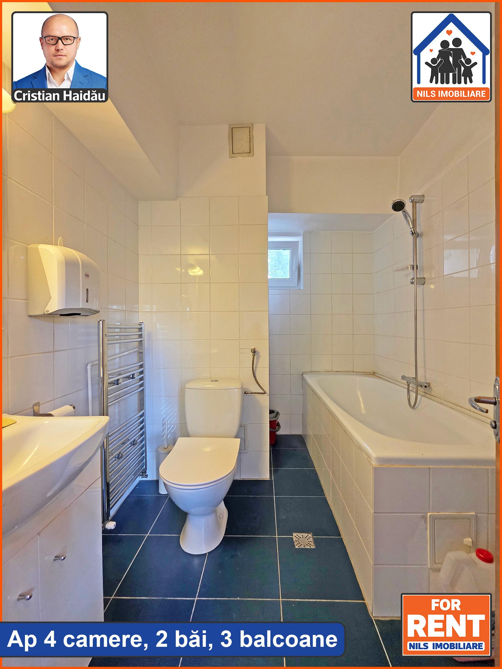 De inchiriat: Apartament cu 4 camere, doua bai si 3 balcoane. Suprafata 97mp. /