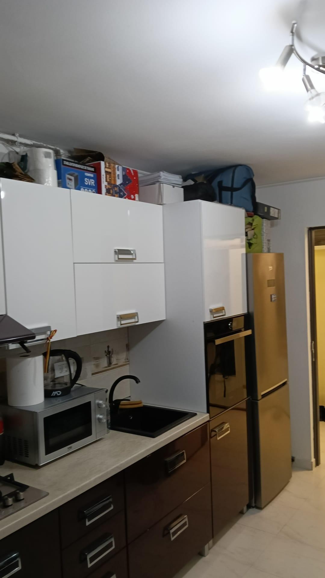 Exista un aparat de aer conditionat pozitionat optim si perfect functional – l-am folosit destul de putin vara. Mobilierul de baie este unul de calitate medie/modesta. In bucatarie si pe holul partial exista prevazuta o gresie de calitate foarte buna. Balconul este generos si este dezvoltat pe lungime astfel incat sa existe acces in acesta atat din living, cat si din bucatarie. Bucataria este separata complet de living si este foarte spatioasa, incat poate fi amplasata chiar o canapea sau un pat de doua persoane (in calitate de inginer mi-am gandit practic si eficient spatiile).