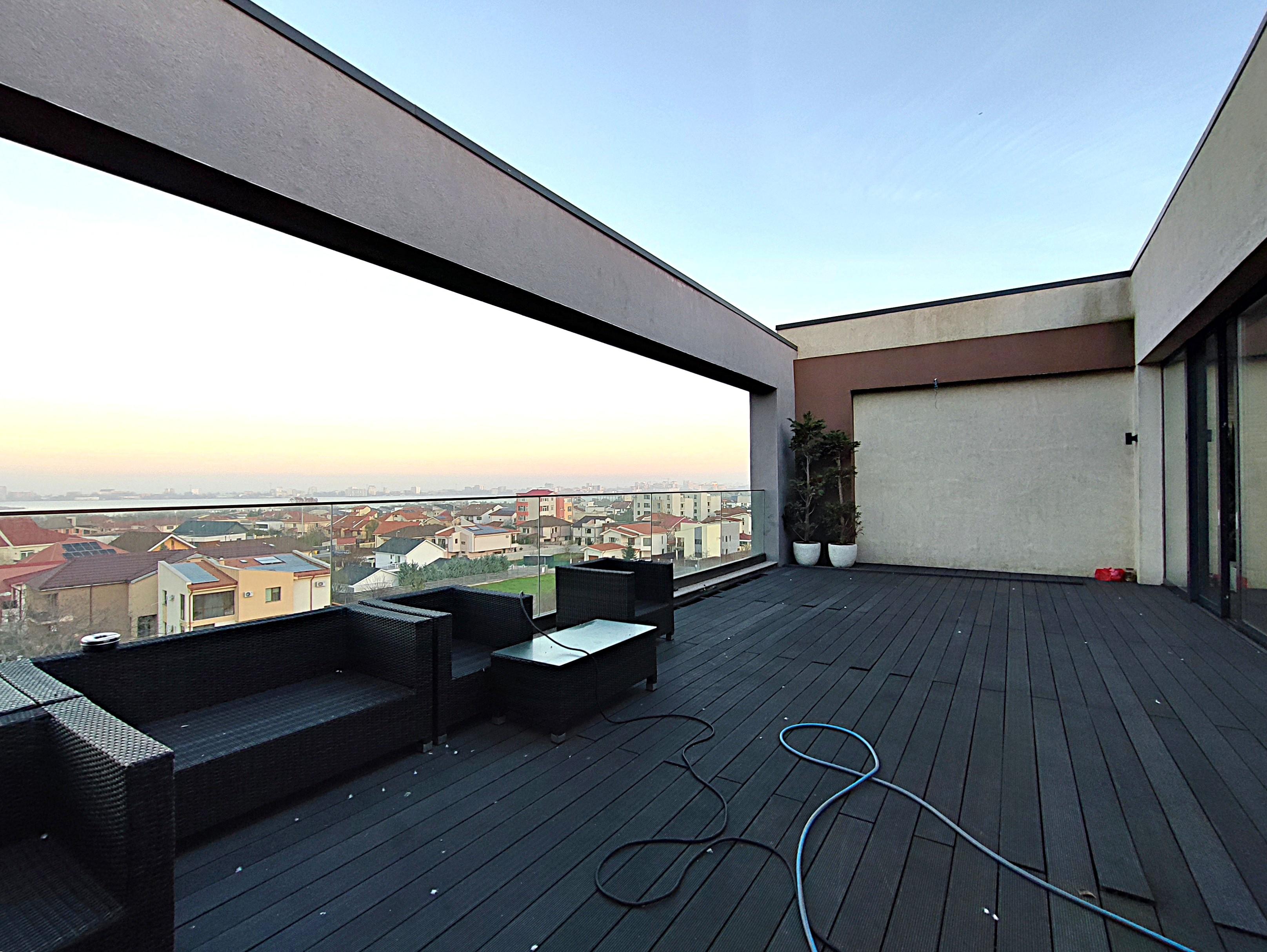 Penthouse-ulul se află într-un imobil nou, cu acces facil către stațiuni, centre comerciale și zona de nord a Constanței.