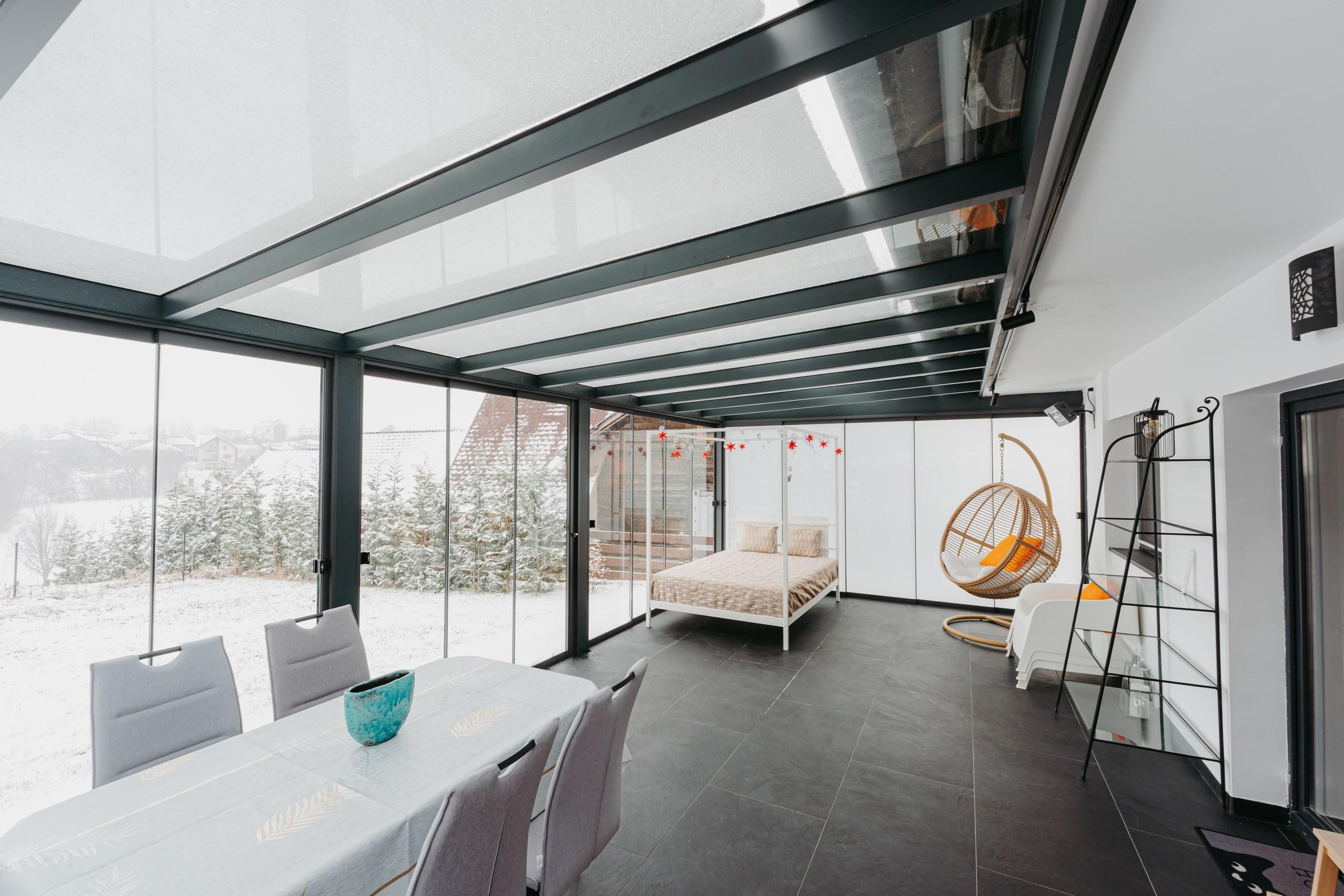 • 115 mp utili (compartimentare ideală pentru familie/cuplu) + terasă spectaculoasă de 32 mp închisă cu sticlă glisantă (încălzire în pardoseală + panouri infraroșu; jaluzele de umbrire cu protecție UV). Spațiu ideal pentru mese festive, cafele cu prietenii sau relaxare la soare☕️🎂🥂