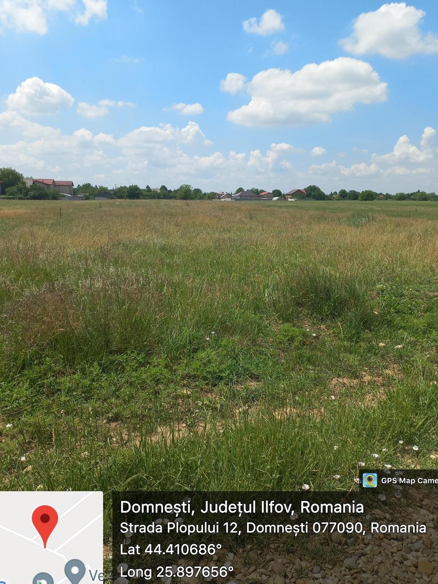 Teren de vinzare Domnesti/Ilfov str,Plopului in suprafata de 7521mp front stradal 28m lungime 274m.teren intravilan. cadastru intabulare utilitati:energie electrica gaze nat.pret.25 euro mp.